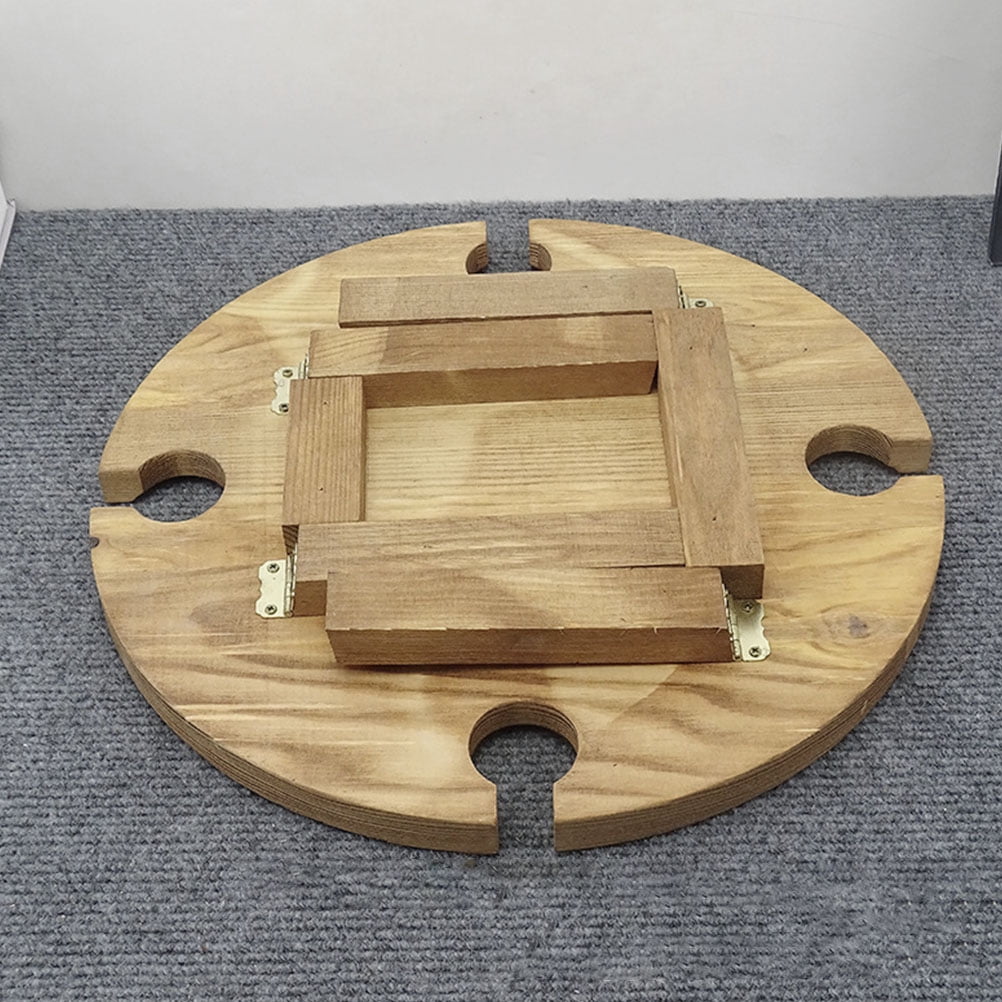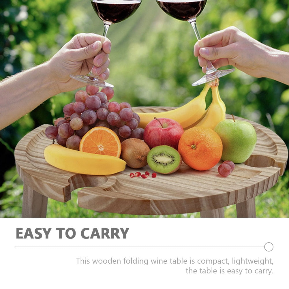 This item is a table specially designed for storing wine, wine glasses or other food, with different storage areas on the surface, it can be used to hold your wine glass, snack dishes and wine bottle without easily falling off. -foldable table outdoor