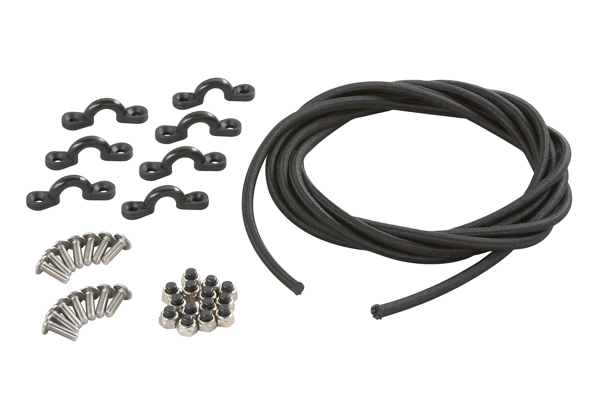 - Includes 12’ (3.66m) of 3/16” (0.48cm) bungee cord, 7 deck loops, & hardware