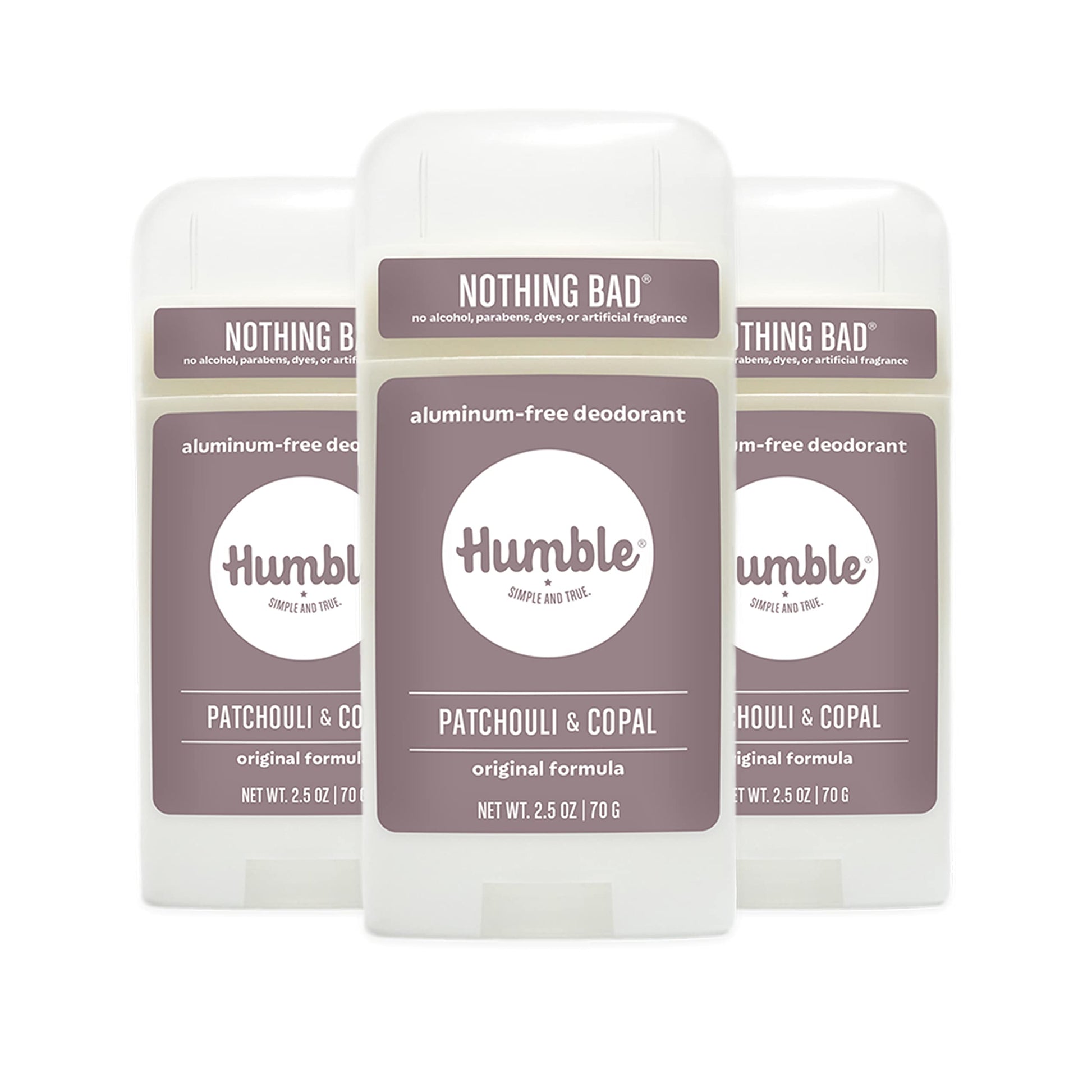 HUMBLE BRANDS Original Formula Aluminum-free Deodorant. Long Lasting Odor Control with Baking Soda and Essential Oils, Patchouli and Copal, Pack of 3