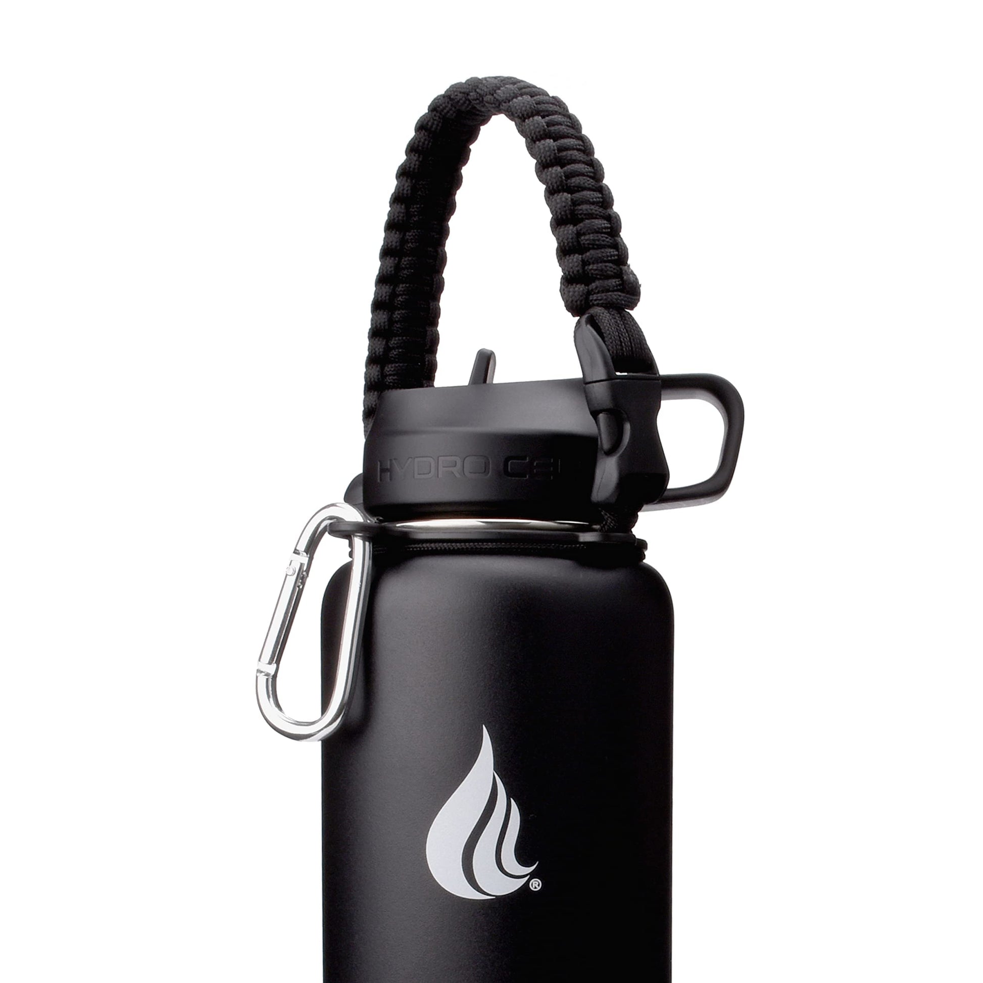 HYDRO CELL Paracord Handle for Wide Mouth Water Bottles - Carrier Strap w/Attachment Ring and Carabiner Accessory. Compatible w/ 64oz, 40oz 32oz, 24oz, 18oz, 14oz Insulated Bottles