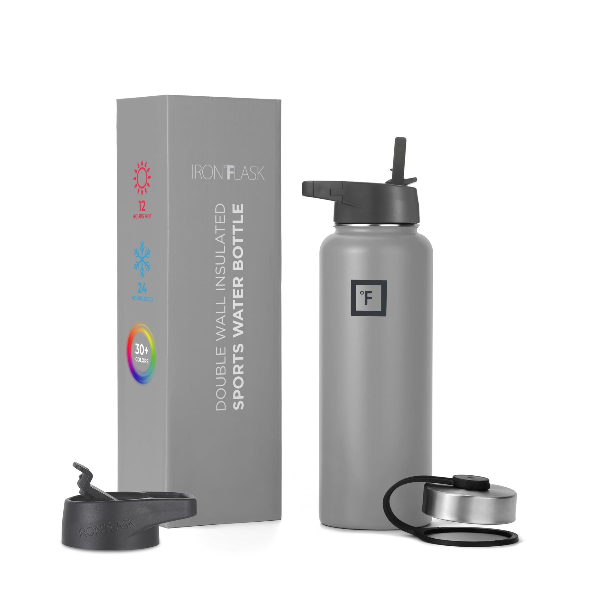 IRON °FLASK Camping & Hiking Hydration Flask, Wide Mouth, 3 Straw Lids, Stainless Steel Outdoor Water Bottle, Double Walled, Insulated Thermos, Metal Canteen - Graphite Slate, 40 Oz