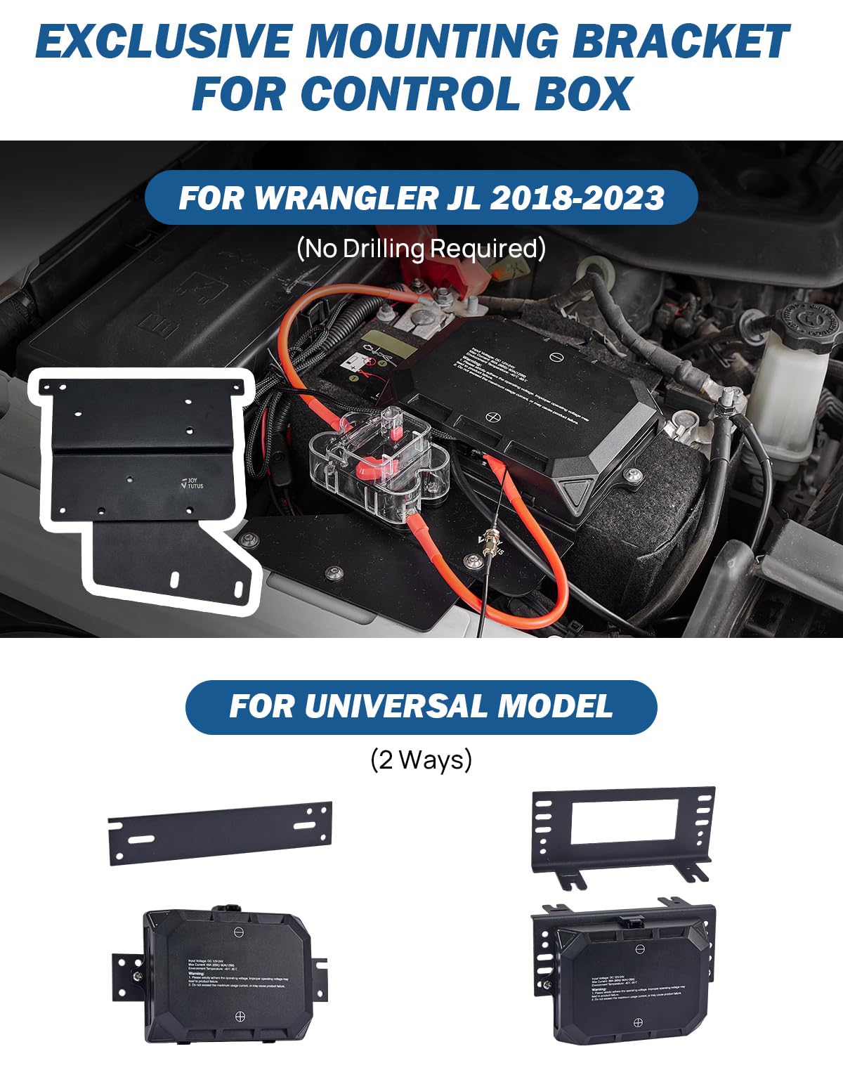 - 【With Extra Bracket】Provide control box dedicated mounting brackets compatible with Wrangler JL models (no extra drilling required), and control box universal brackets (2 sets) suitable for most vehicles. There are also 2 switch panel mounting brackets to install anywhere you want.