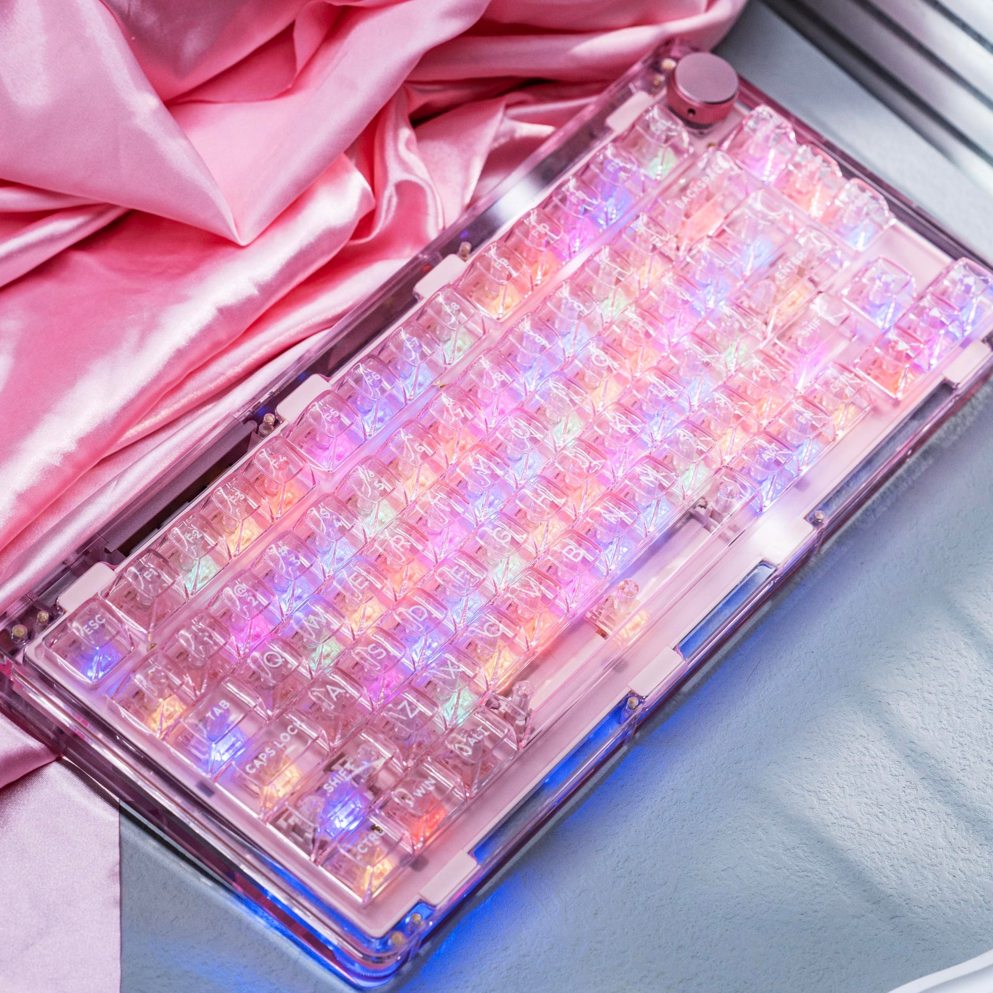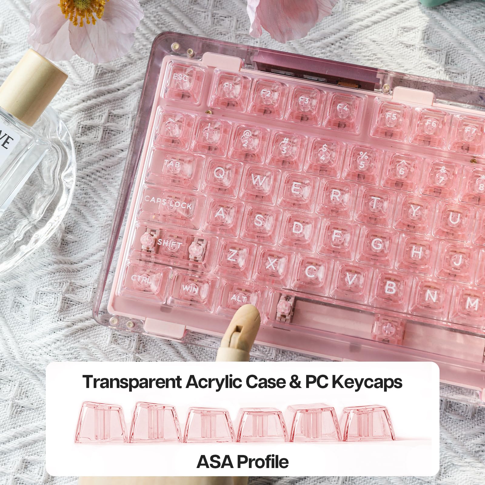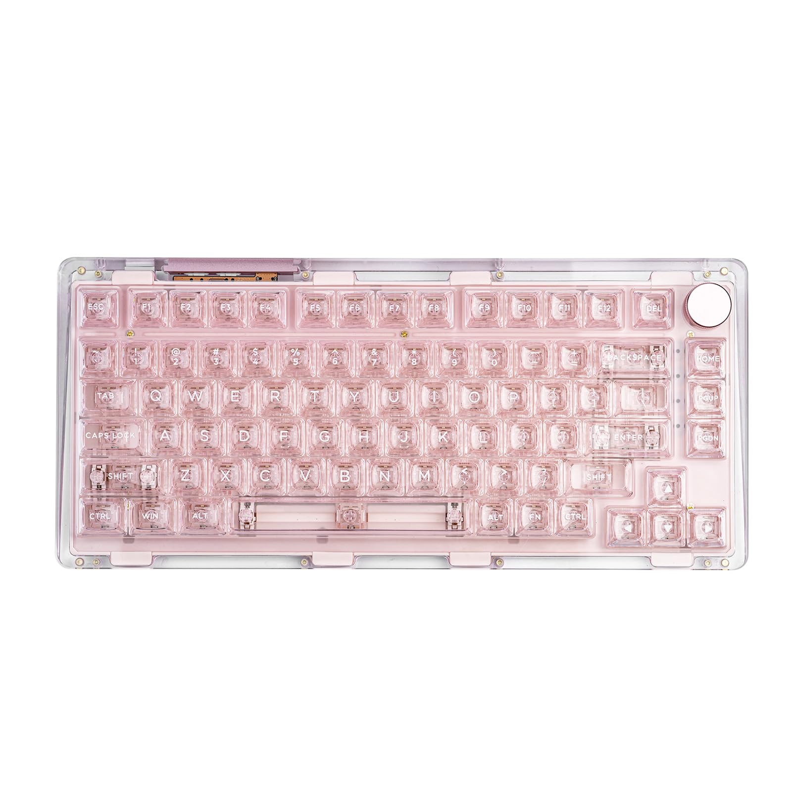 KiiBoom Phantom 81 75% Transparent Mechanical Gaming Keyboard, Hot Swappable Custom Gasket Keyboard with RGB Backlit, Clear Keycap, Rechargeable Battery, Triple Mode for Win/Mac (Phantom 81 V2 Pink)