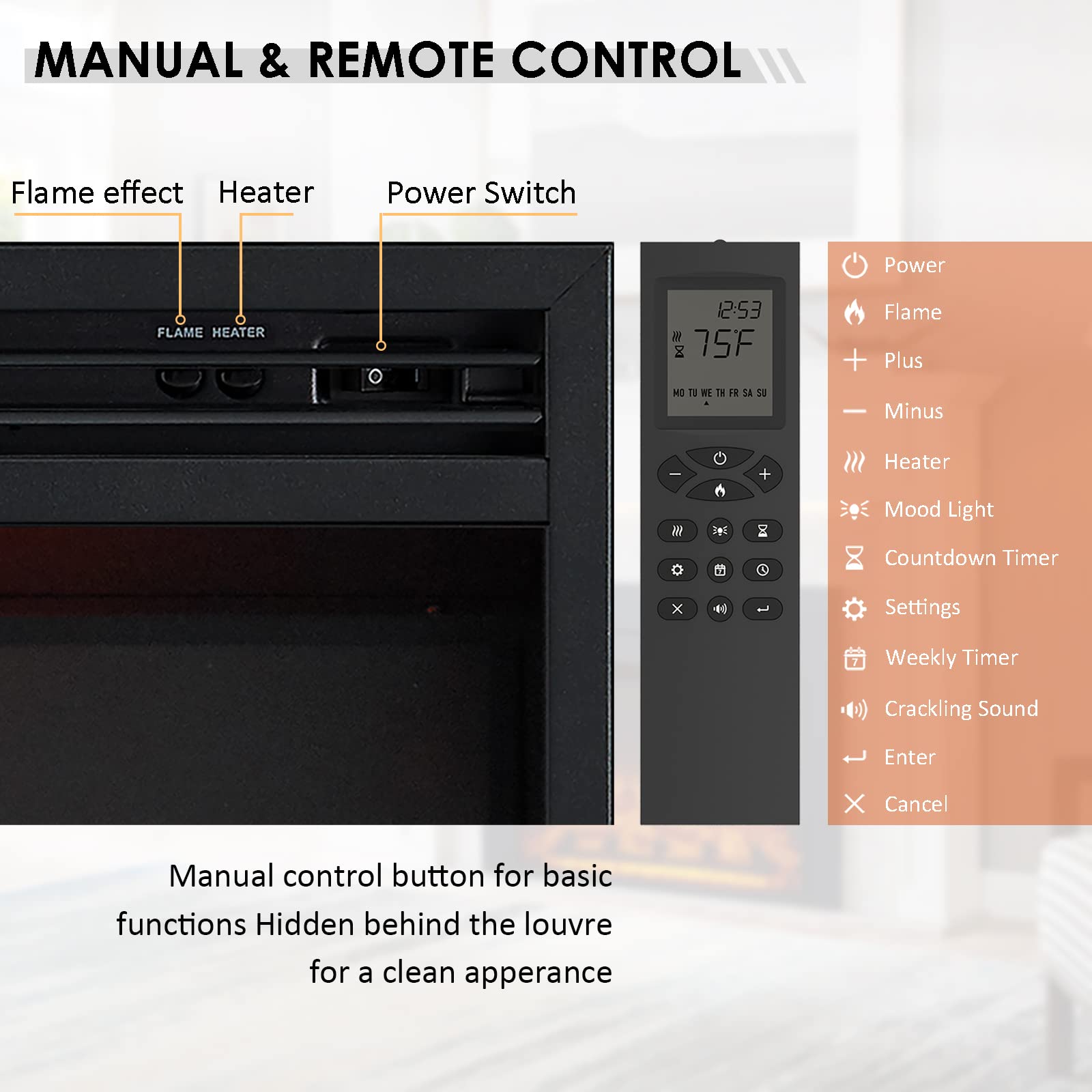 - LegendFlame Electric Fireplace with Mantel Package - 36' Electric Fireplace Insert with Mantel - Cream White with Light Grey Marble Finish, 750W/1500W Heater, Weekly Timer, Mood Light, Remote Control