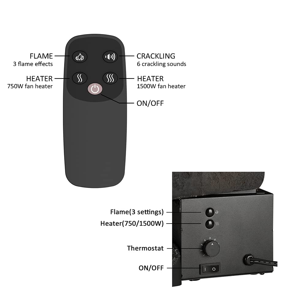LegendFlame 23" W Free Standing Electric Fireplace Log Set (EF290), Fireplace Insert, Heater 750W/1500W, Crackling Sound, Remote Control