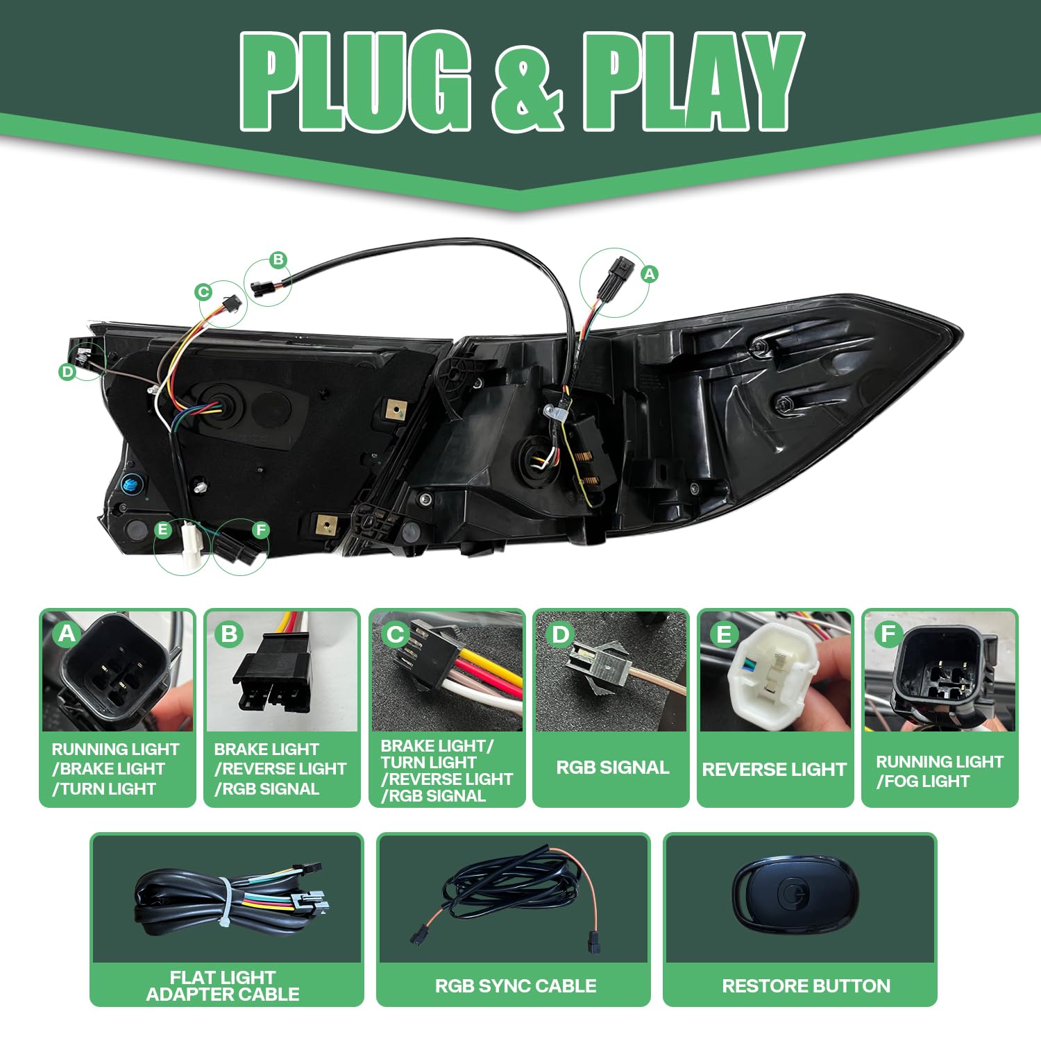 - [Features]: With dynamic animation, reversing light, color changing and sequential turning signal, the tail lights will give your car a striking appearance