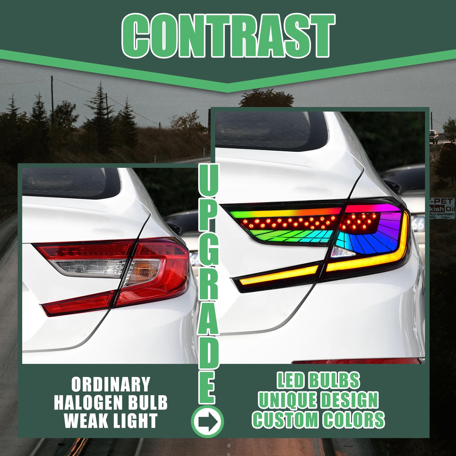 letsdate RGB Tail Lights for Honda Accord 2018-2022, LED Taillights Assembly for Honda Accord 10th Gen, Dynamic Animation, Plug&Play (RGB, 1 Pair)