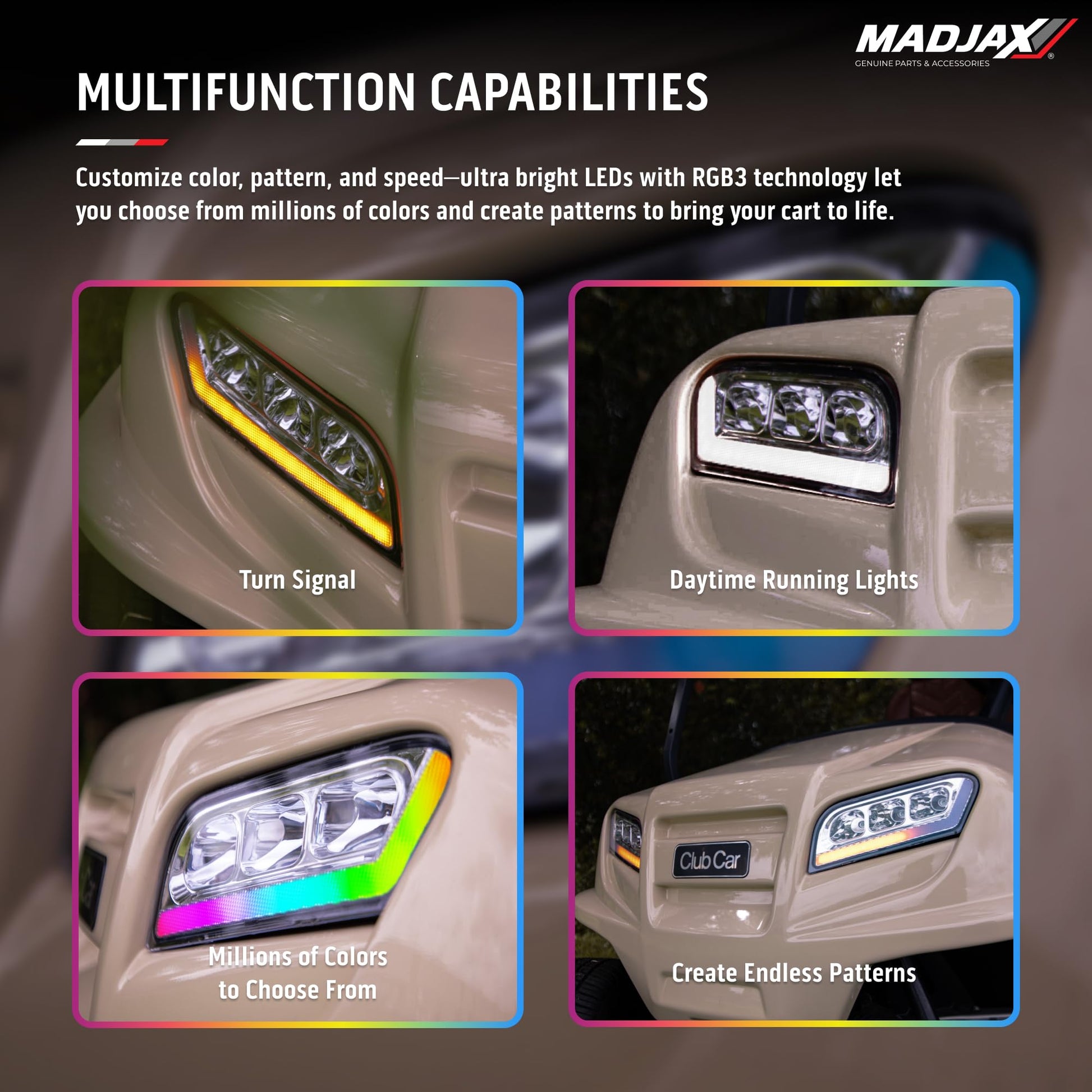 MADJAX LUX LT Golf Cart LED Headlight Kit Compatible with Club Car Onward Models | Fits 2017-Up Models | RGB LED Golf Cart Lights