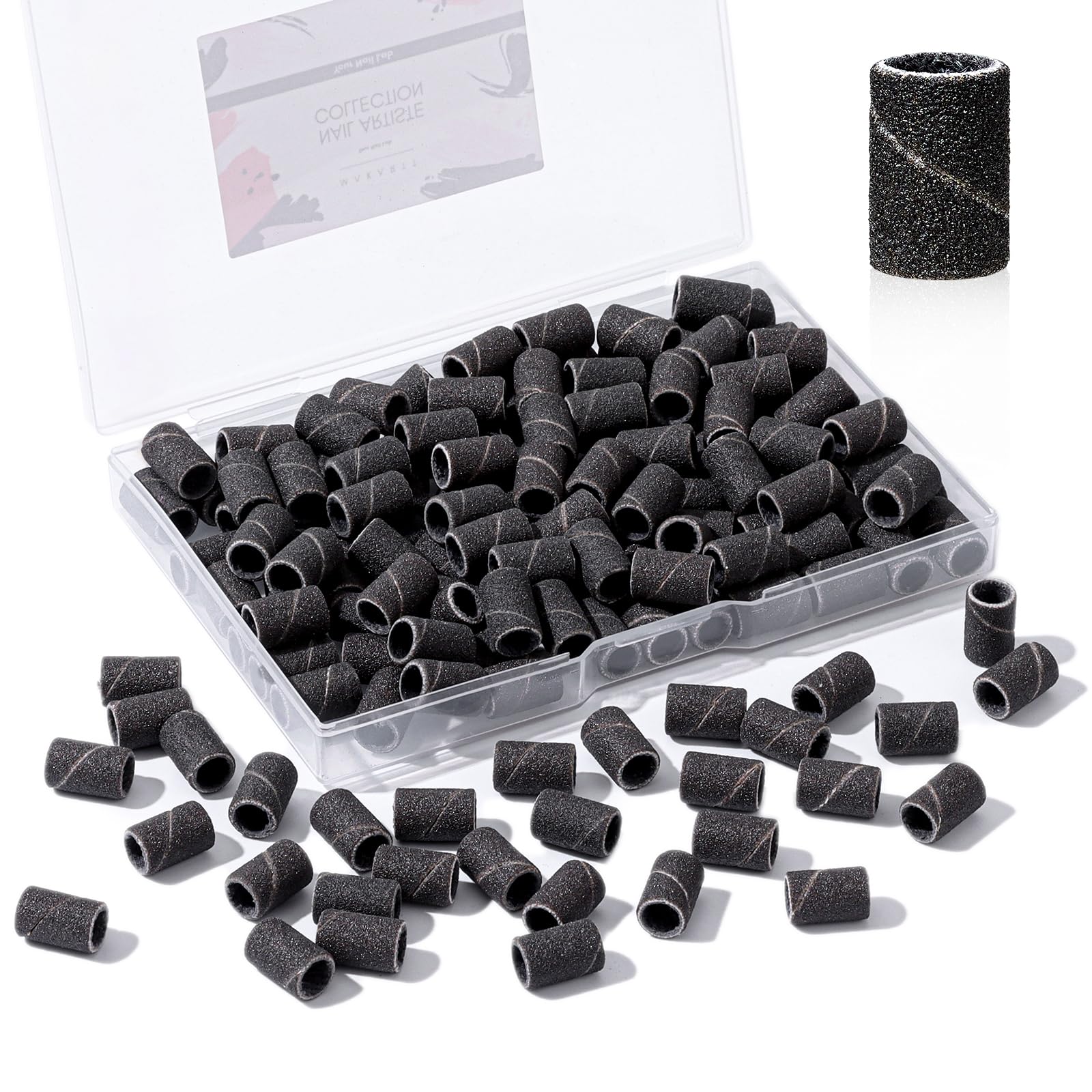 Makartt Sanding Bands for Nail Drill, 100 Pcs #240 Fine Grits Nail File Sanding Bands For Drill Bits, Nail Prep Smooth Polish, Upgrade Thicker Durable Sanding Drill Bit For Acrylic Nails Gel, Black