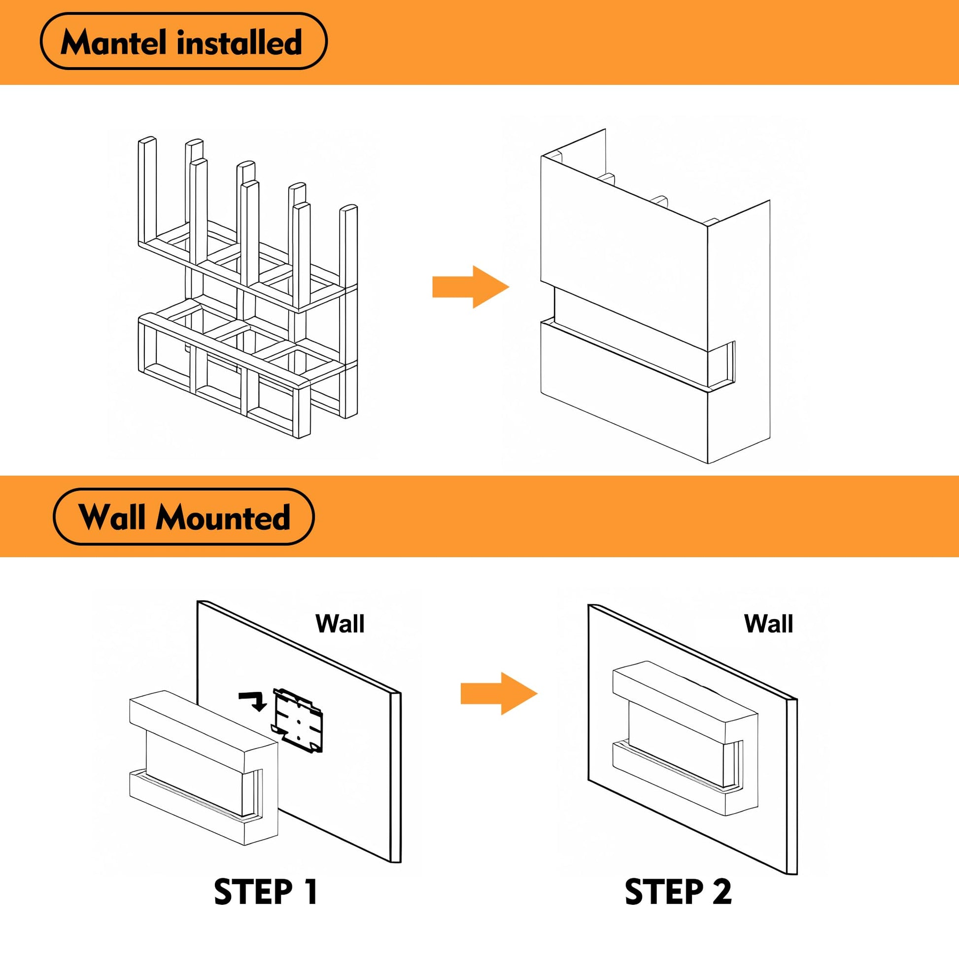- EASY INSTALLATION: Overall dimensions: 36'W×26.8'H×9.98'D. Wall-mounted or recess this electric fireplace heater into a cabinet of your choice. With a modern look, this electric fireplace is perfect for indoor use in living rooms, bedrooms, offices and other entertainment venues.