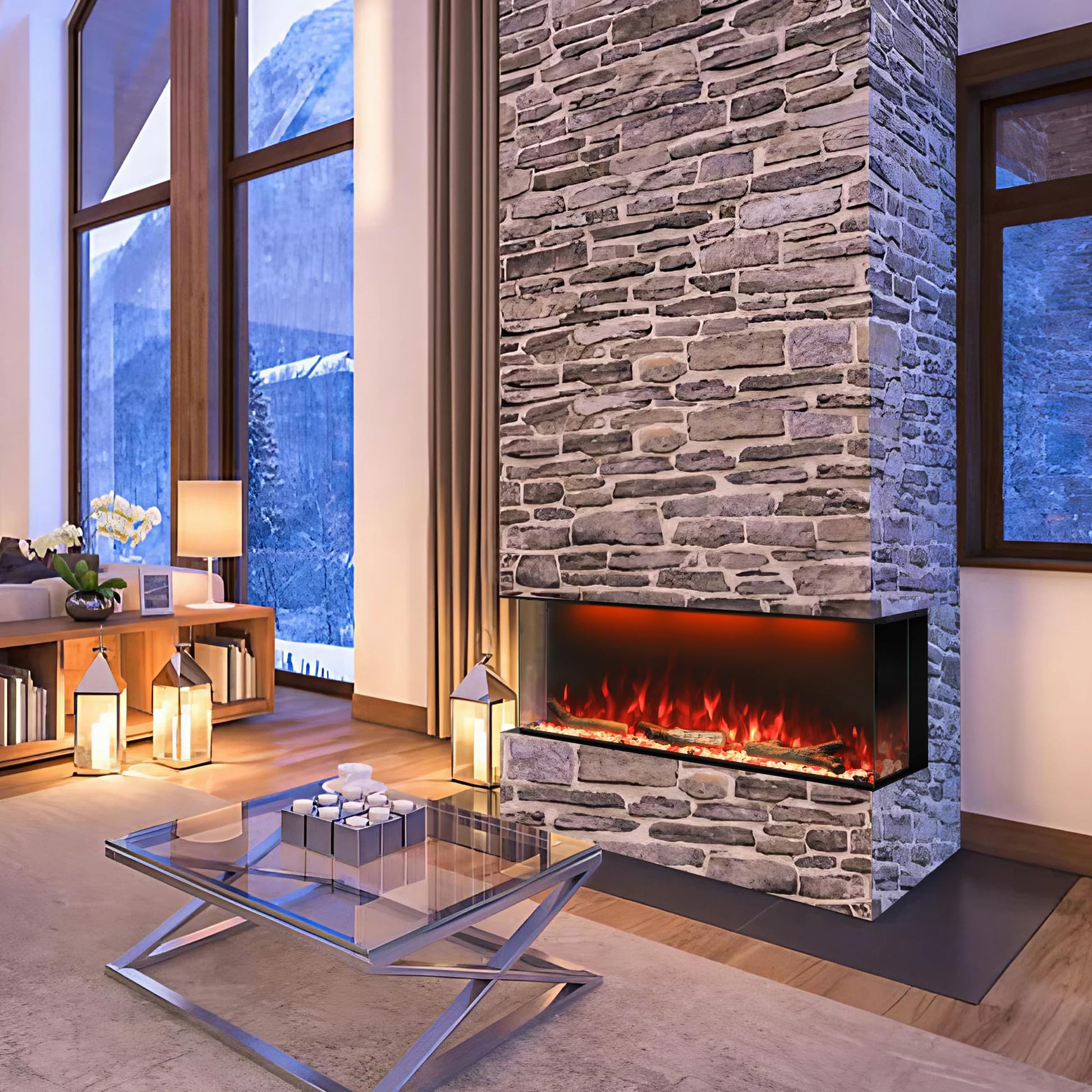 - 3D FLAME EFFECT: You can enjoy the realistic flames from any angle with this 3-SIDE DESIGN electric fireplace. 13 Flame color × 13 bed fuel color, 3 levels top light, 5 flame brightness, 507 combinations max! Log and Crystal sets fuel bed options both available. A panoramic fireplace heater with dancing flames not only makes your home more aesthetically attractive, but also adds enough warmth.