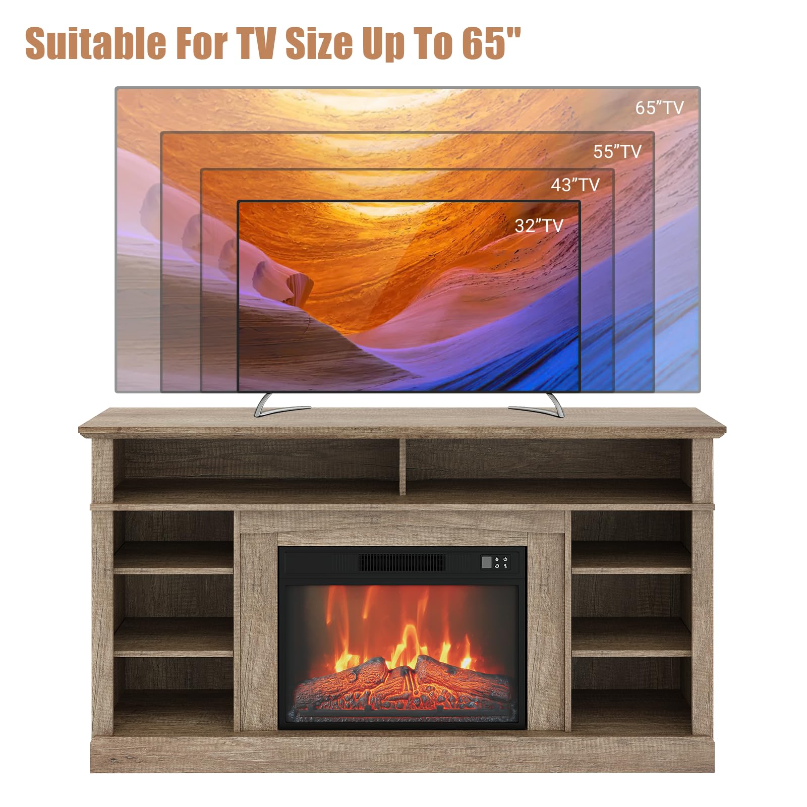 MilleLoom 58" Fireplace TV Stand, Fireplace Entertainment Center for TVs up to 65'' Console with 23-Inch Electric Fireplace & Remote Control, Wooden TV Cabinet for Living Room