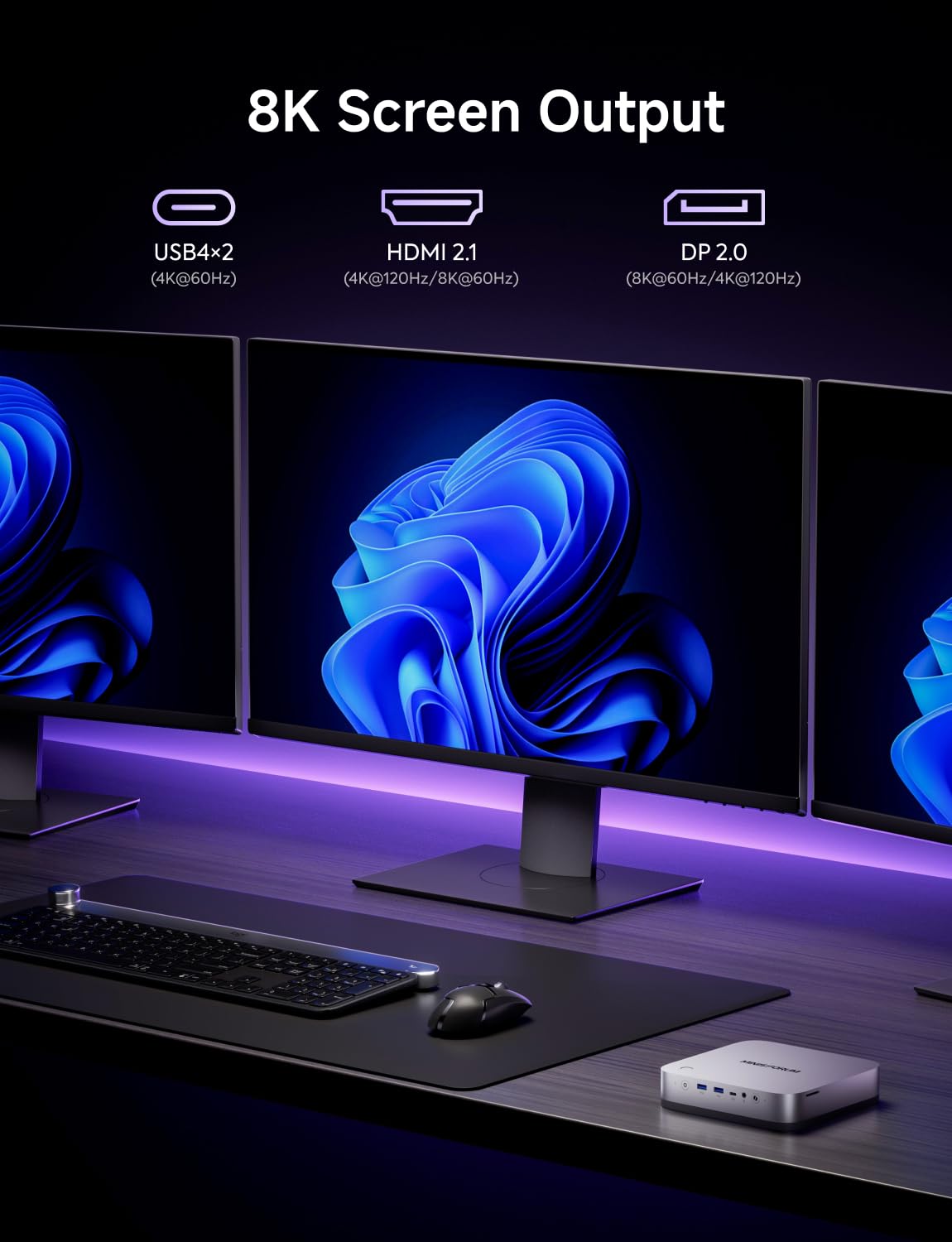 - 【Expandable Storage】 This Micro Computer has pre-installed 96GB DDR5 RAM and 2TB M.2 2280 PCIe4.0 SSD. , you could expand it to 4TB. There two more PCIe4.0 SSD slots available for expanding the storage, total up to 12TB. Without worrying about lack of capacity, you can run software smoothly, watch and storage large-scale movies, photos without any stress.