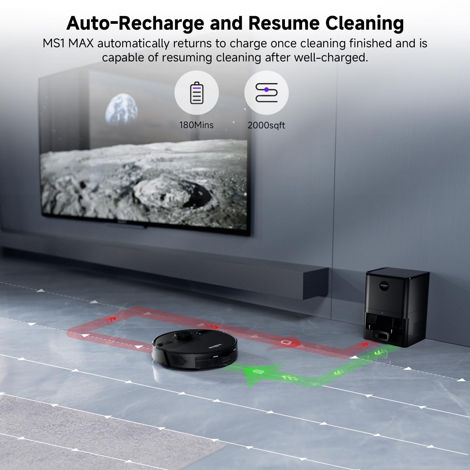 - ๐ช๏ธ[๐๐๐๐๐๐ ๐๐๐ ๐ ๐๐ฎ๐๐ญ๐ข๐จ๐ง ๐๐จ๐ฐ๐๐ซ] โคUnleash powerful suction with the MONSGA MS1 MAX robot vacuum! Driven by a high-performance motor, the vacuum robot effortlessly removes hidden debris, stubborn pet hair, and deeply embedded dirt from carpets, hardwood, tiles, and beyond. From kitchen crumbs to hidden scattered litter, no mess escapes its power