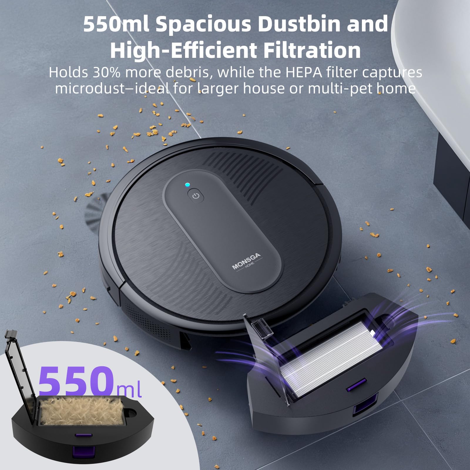 MONSGA Robot Vacuum Cleaner, 3000Pa Powerful Suction Robotic Vacuum, 3.2" Super-Slim, 140Min Runtime, Vacuum Robot for Hard Floor/Low Pile Carpet/Pet Hair, Remote/App/Voice Control, Schedule Clean