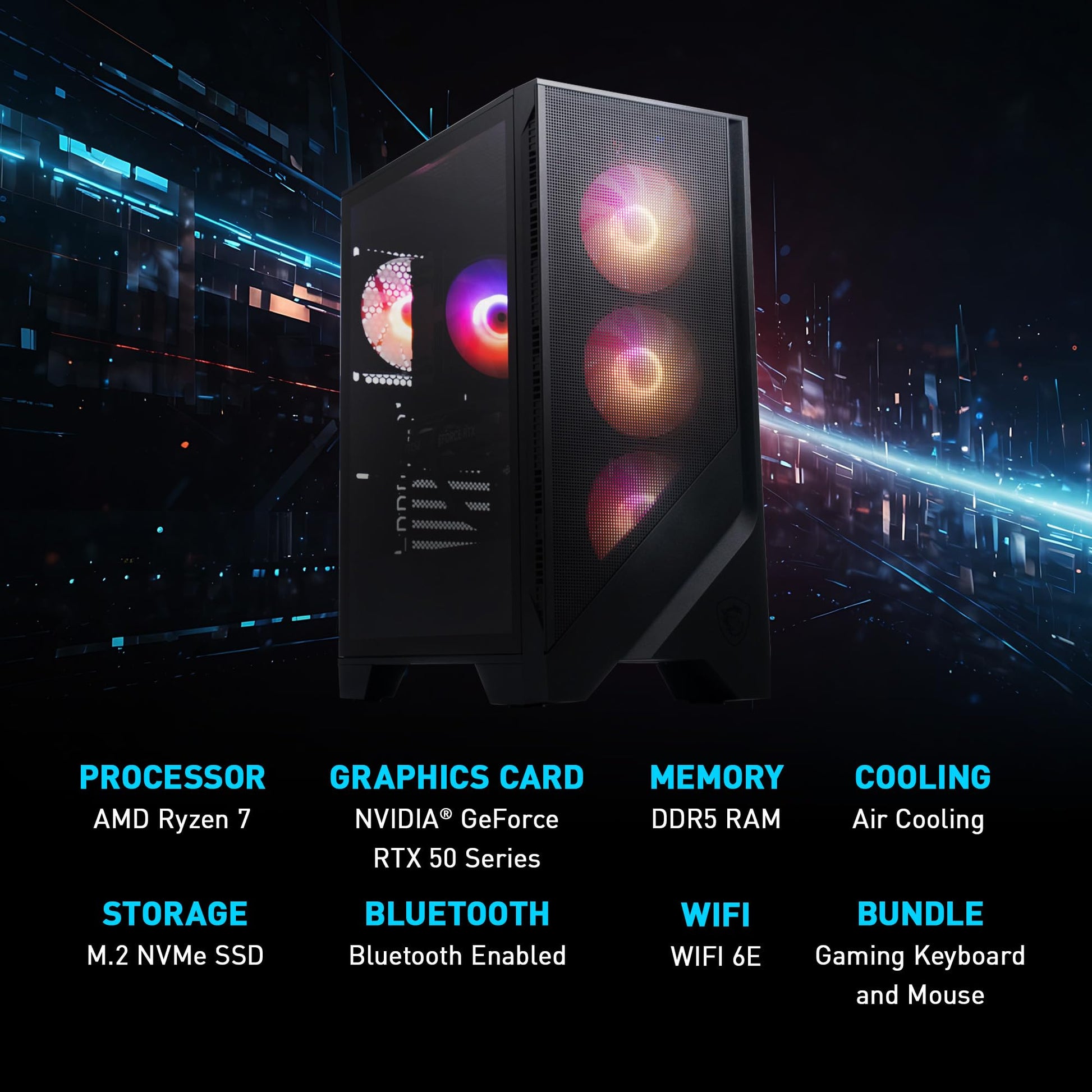 Details: MSI Codex Z2 Gaming Desktop: AMD R7-8700F, GeForce RTX 5070, 32GB DDR5, 2TB m.2 NVMe SSD, USB Type-C, VR-Ready, Windows 11 Home : A8NVP-436US