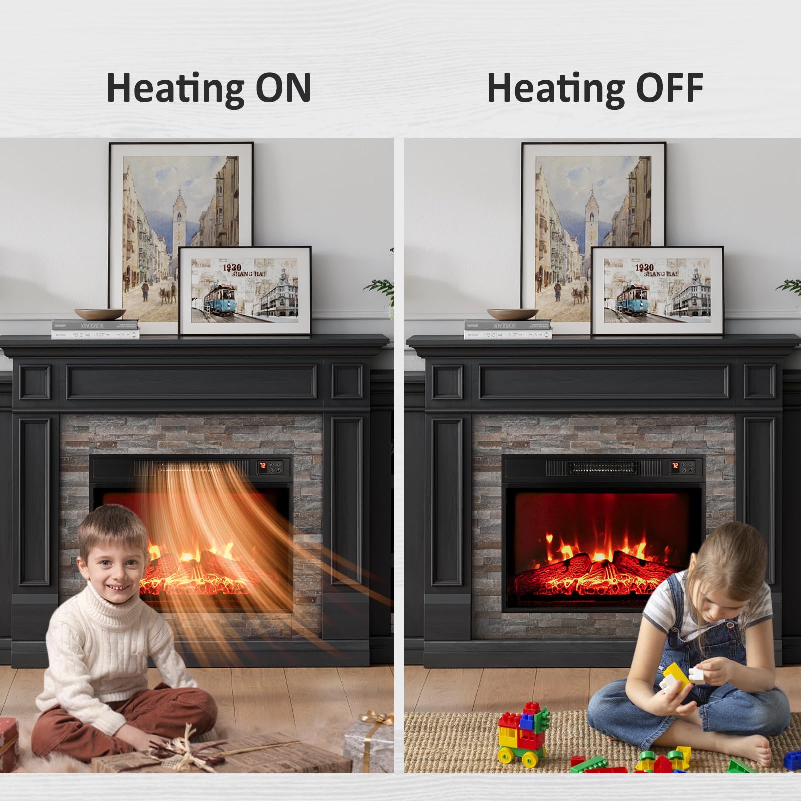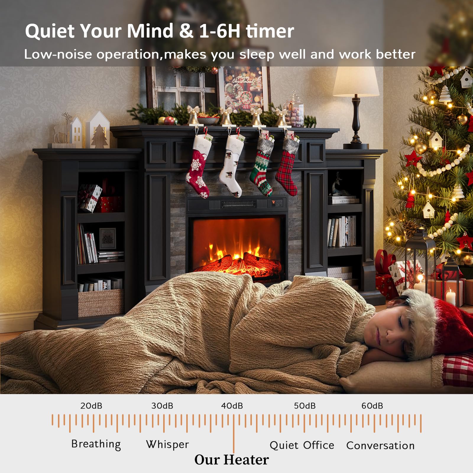 - 【Efficient Heating】 Both safe and convenient, the 1400W fireplace heater has a high power output of 5,000 BTU, warming up to 400 square foot room to enjoy the constant warmth and beauty without the smoke and ashes. Overheat protection and flame failure protection makes more safety.