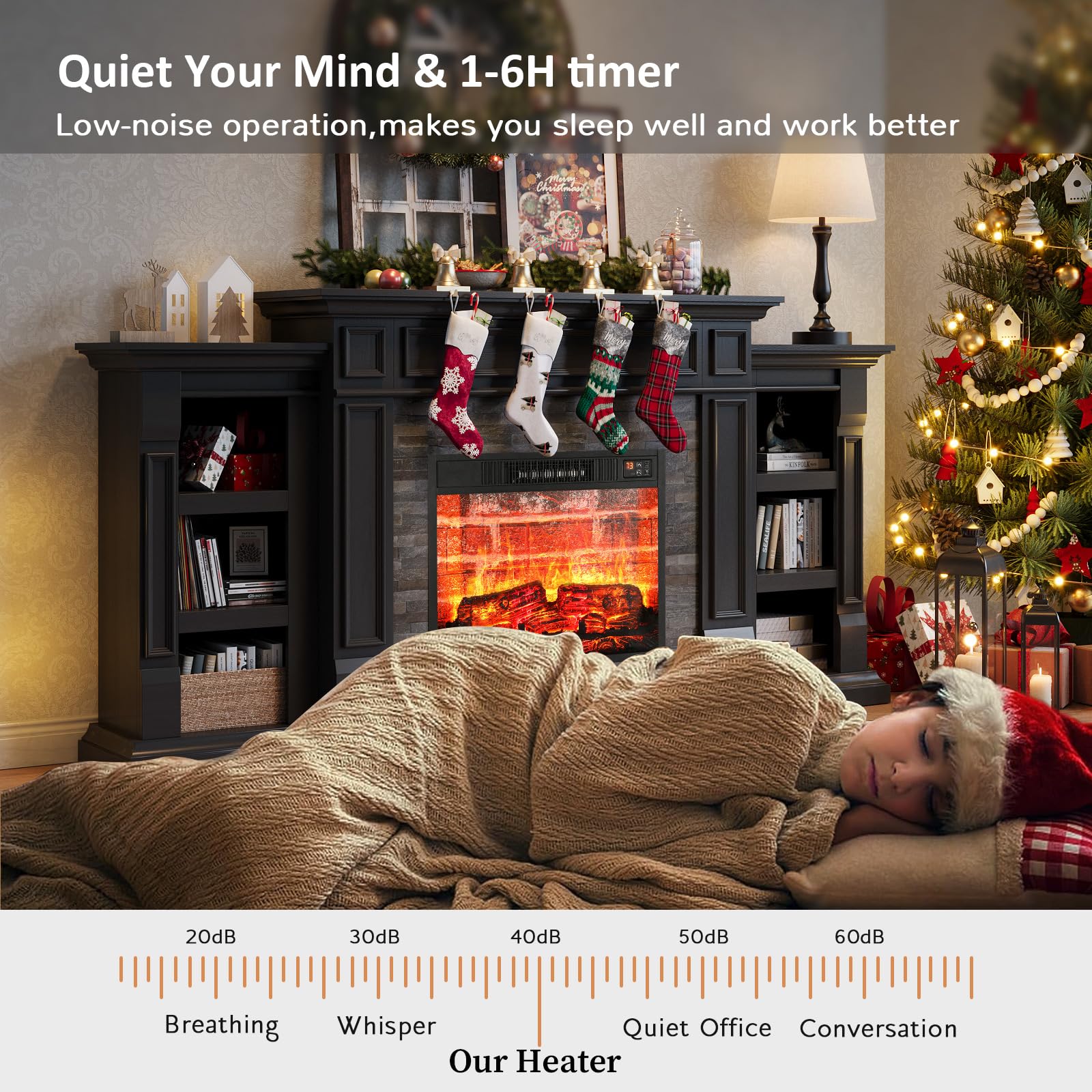 - 【Efficient Heating】 Both safe and convenient, the 1400W fireplace heater has a high power output of 5,000 BTU, warming up to 400 square foot room to enjoy the constant warmth and beauty without the smoke and ashes. Overheat protection and flame failure protection makes more safety.