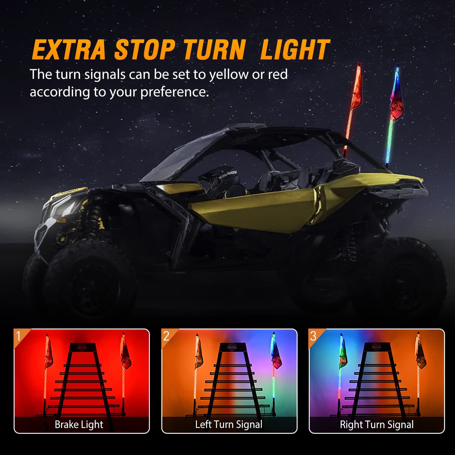 - 【Add Brake & Turn Signal Light】Whip lights come with extra red stop/brake light and amber turn signal light to add additional safety for your ATV UTV side by side.