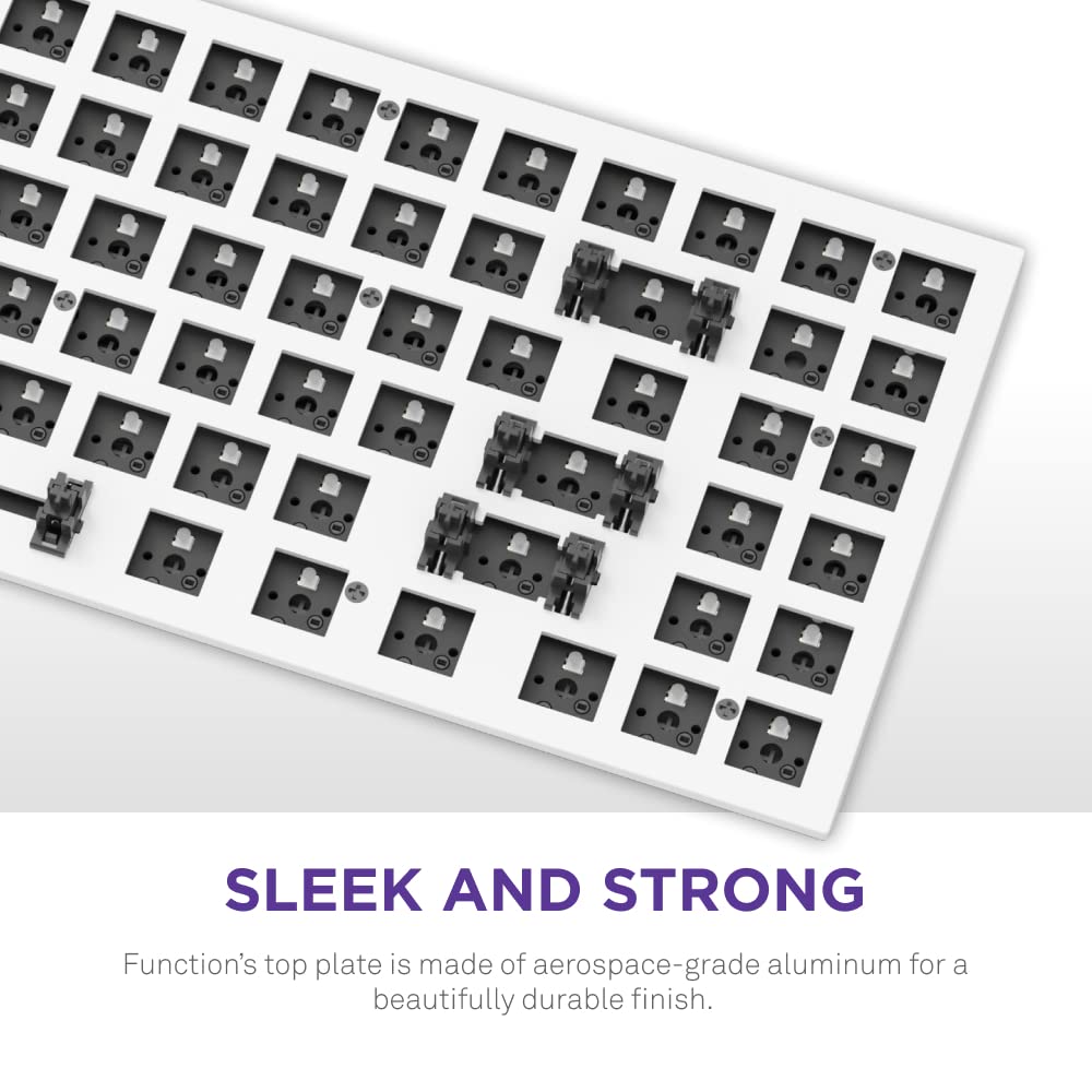 Details: The NZXT Function mechanical keyboard KB-175US-WR combines a durable aluminum top plate with smooth, linear RGB switches, making it the perfect companion for PC gaming. Update the look and feel of your keyboard at any time thanks to hot-swappable key switch sockets at every position, and standard bottom row sizing that make keycap swaps a breeze.