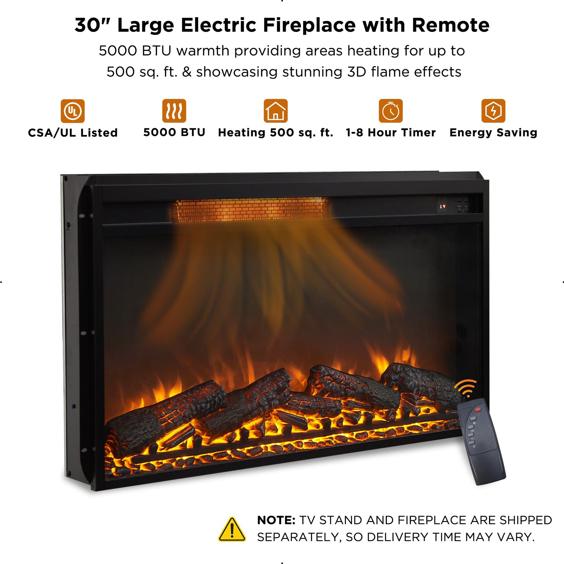 - Cozy Ambiance, Effortless Comfort: Embrace the cozy warmth of our 30' Electric Fireplace, capable of heating areas up to 500 sq. ft. With 4 adjustable brightness levels, relish in the fireplace's allure without the upkeep. Choose between heat and no-heat for year-round enjoyment. Safety is paramount, thanks to the Overheat Protection feature that automatically shuts off in case of overheating. Control it all from a distance with the included remote.