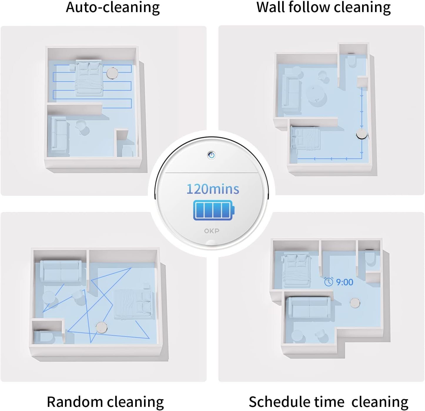 - SMART CONTROL - With the OKP Life intelligent App, you can remotely start, stop, pause, or adjust the cleaning mode without the need to operate the robot in person. This automatic robot vacuum is also compatible with Alexa and Google Assistant, allowing users to start and stop cleaning the robot through voice commands.