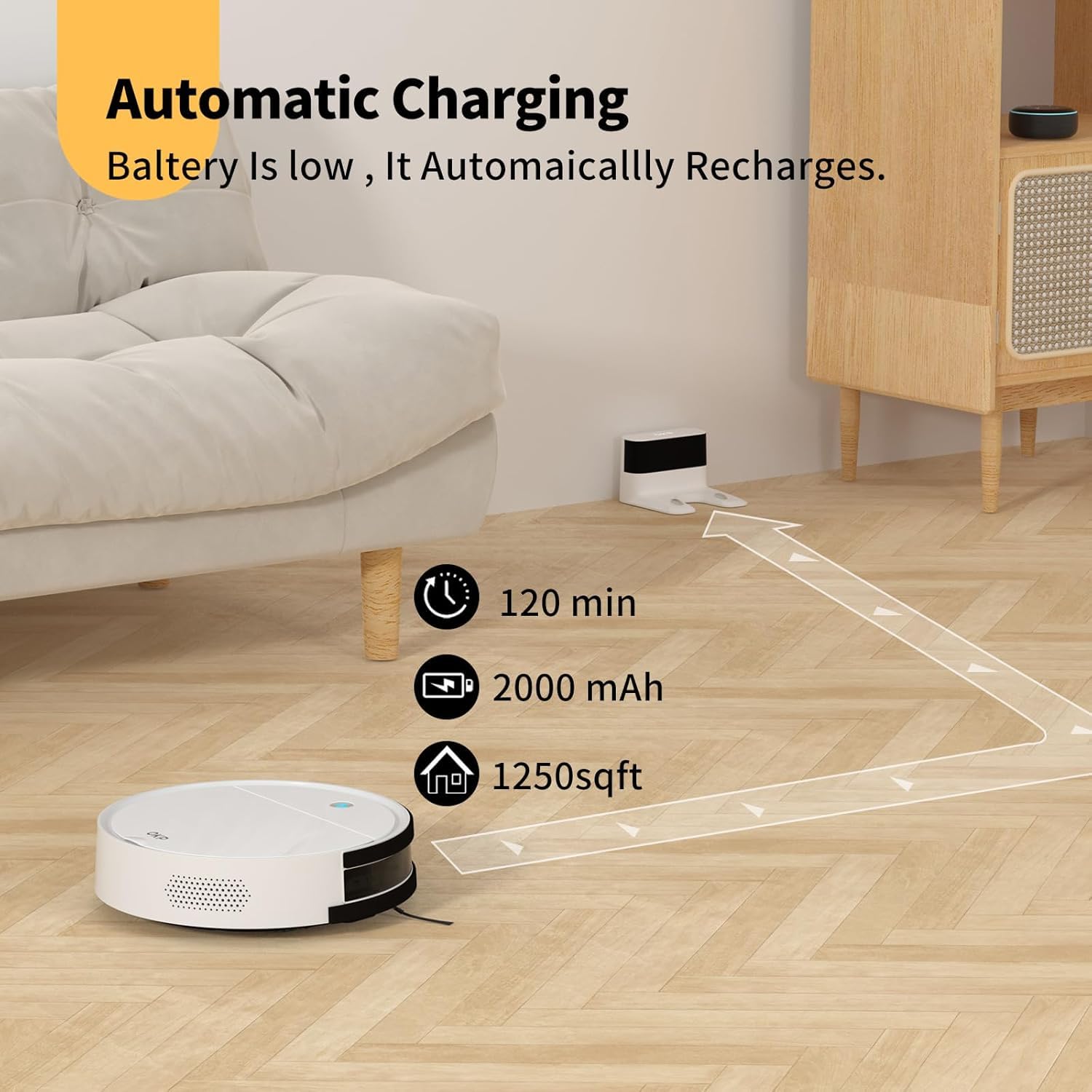 - MULTIPLE EFFICIENT CLEANING MODES - The robotic vacuum can flexibly switch between different modes (auto/spot/edge/zigzag cleaning) through the app, meeting various cleaning needs in the home. Among them, the zigzag cleaning path can cover the maximum area for cleaning, reducing missed spots and improving cleaning efficiency.