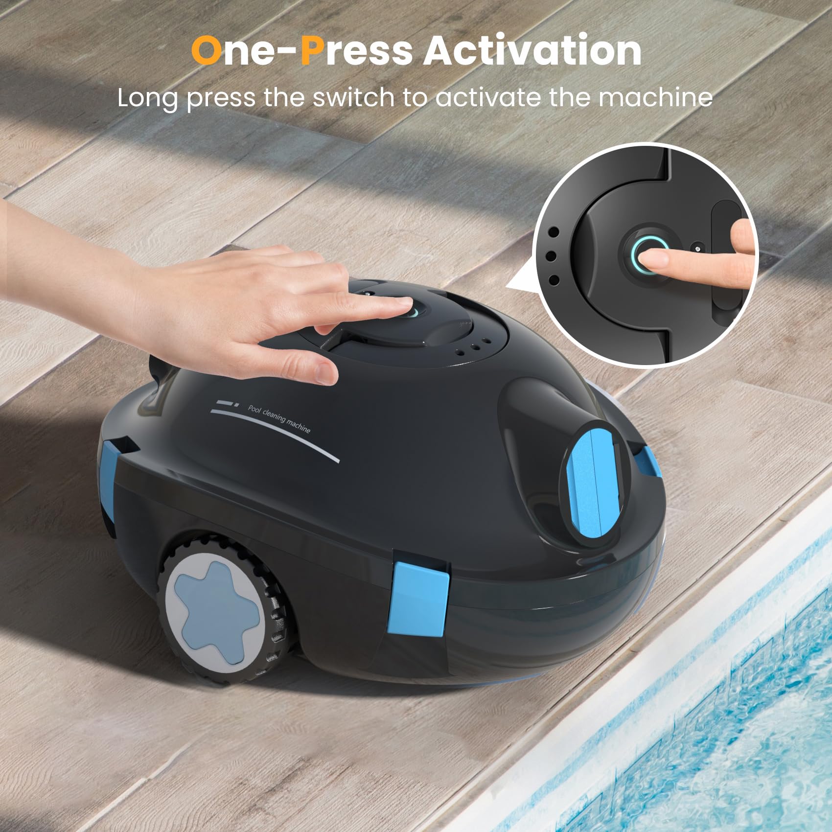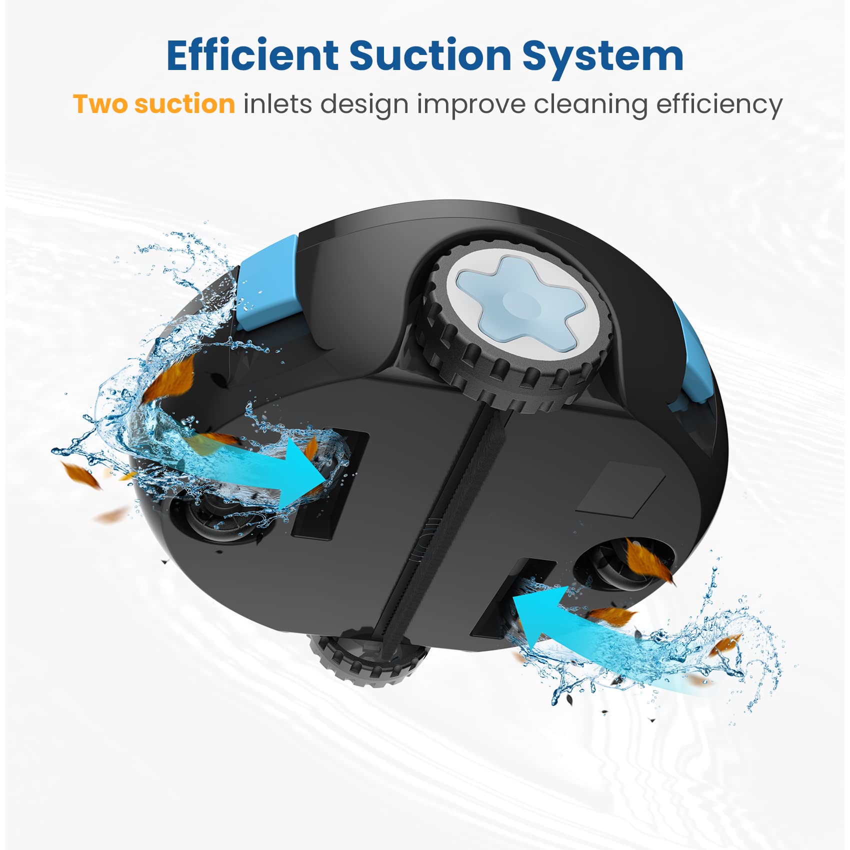 - 【Intelligent Path & 36ft/min Speed】- Features smart navigation with a zig-zag cleaning path to cover 90% of pool floors, reducing missed spots. Moves at 36ft/min (20% faster than competitors) for efficient cleaning of small to mid-sized pools.