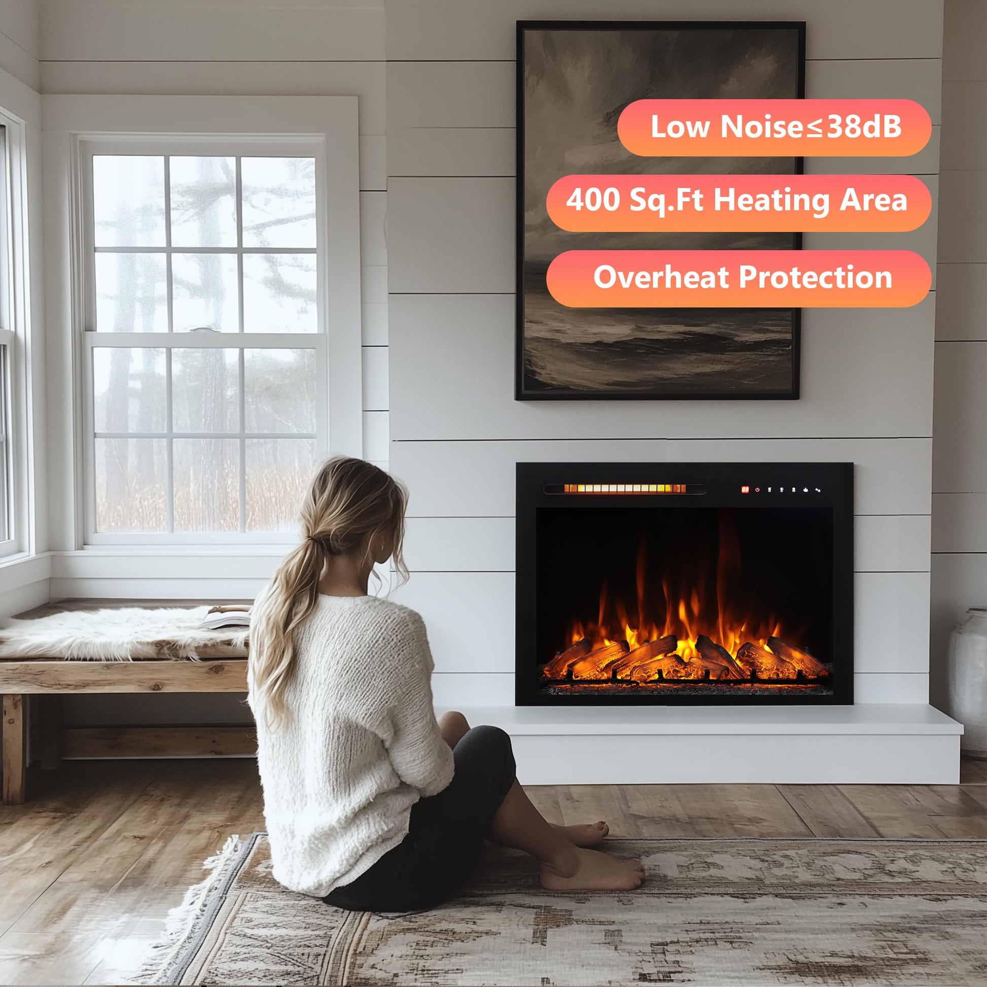 - 【Safety and Comfortable】This linear electric fireplace gives you a smog-free, dust-free warm environment. Built-in overheat protection system. Automatically cut off electric fireplace power when the temperature reaches 212°F, which is friendly for families with children and pets.