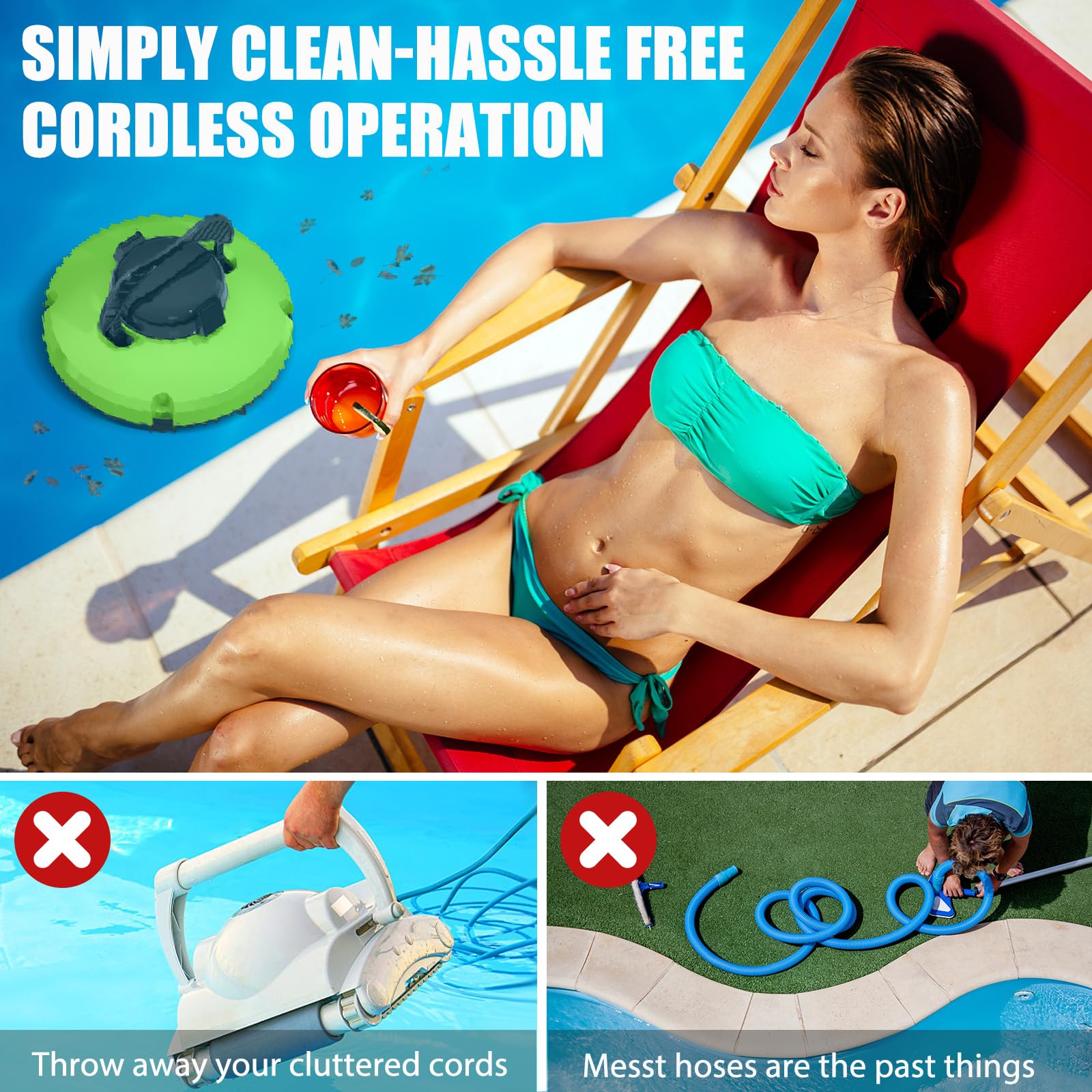 - Lightweight & Easy to Use: The cordless robot pool cleaner is incredibly easy to handle. Maintenance is a breeze—simply remove the cover and rinse the filter with a hose.The robot pool vacuum high - quality shell ensures long - lasting use, and the easy - to - clean built - in filter extends its service life, making it a reliable choice for long - term pool cleaning.