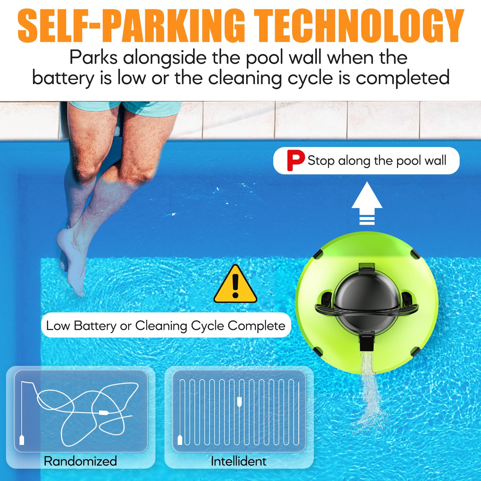 - Intelligent Technology: The cordless pool cleaner quickly adjusts its direction upon wall contact. It also has low - battery detection and will automatically park at the pool’s edge. The pool vacuum cordless design eliminates the hassle of cords and hoses, and with a 4 - hour recharge, it maintains regular cleaning effortlessly. The pool vacuum's one - click start feature allows you to use it in seconds, perfect for busy families.
