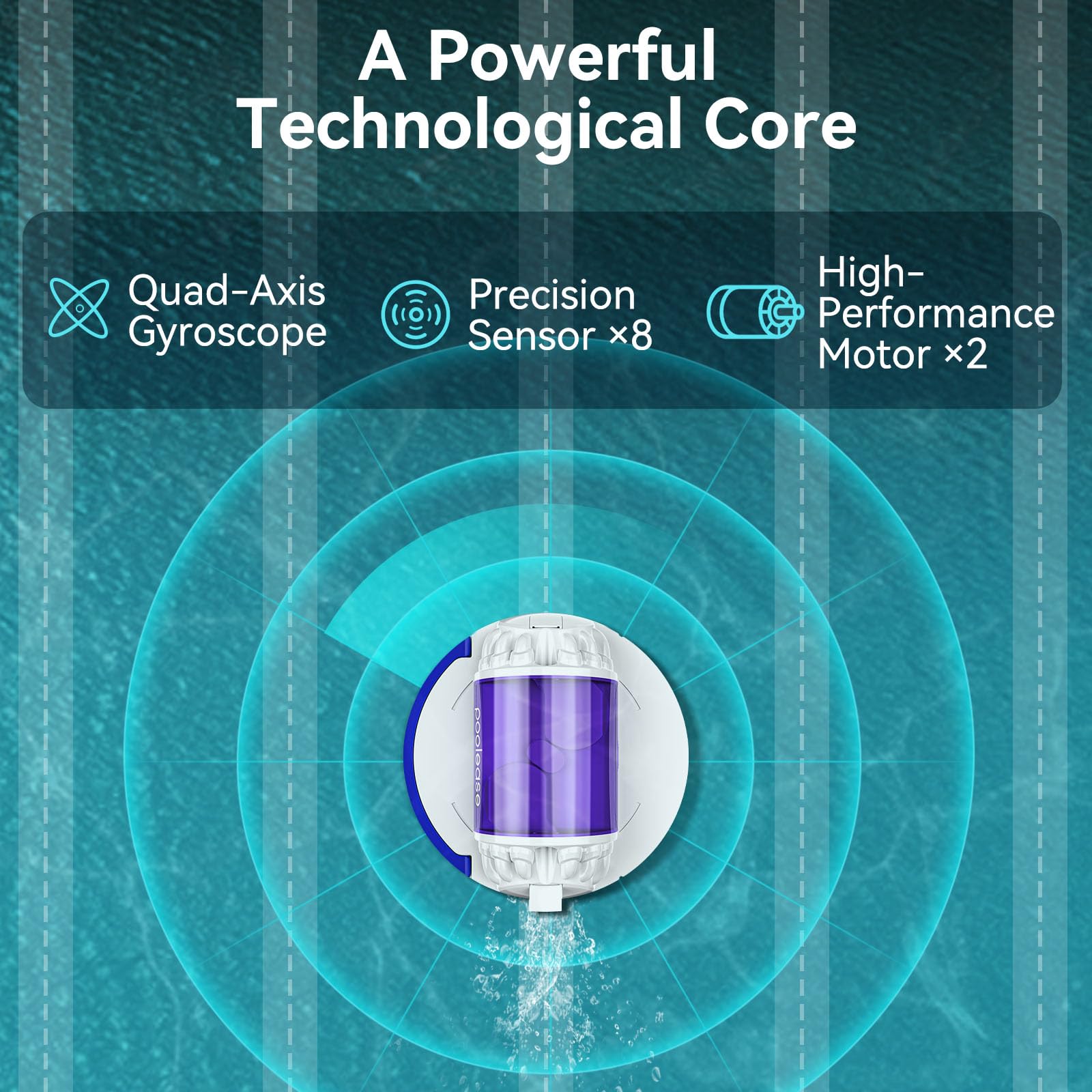 - 【Powerful Technological Core】The Poolease X1 pool cleaner uses four-axis gyroscope tech and eight precision sensors for 95% cleaning coverage. It has the industry's toughest motor shaft at HRC45 hardness, offering superior wear resistance and a lifespan extension of 60%.