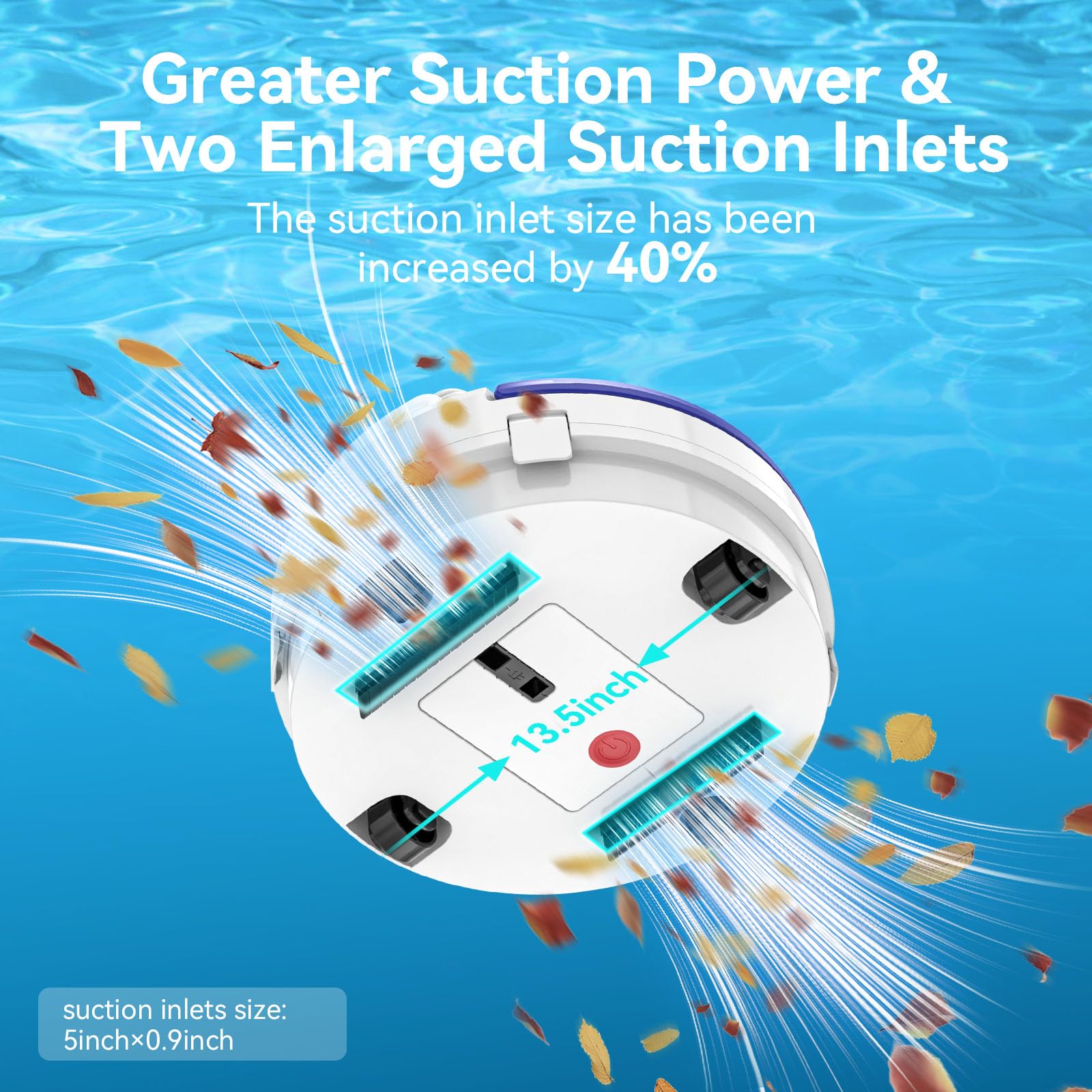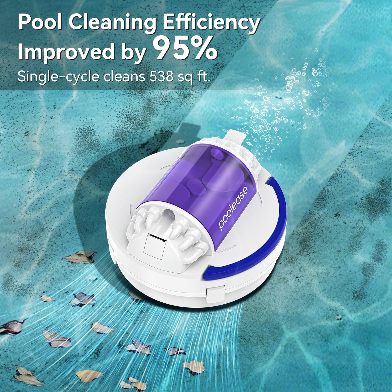 - 【Pool Cleaning Efficiency Improved by 95%】Poolease X1 pool cleaner features a dual-motor design, which boasts a 50% longer lifespan compared to single-motor products. The enlarged dual suction inlet design, paired with a 45W high-power motor, effortlessly picks up sand, hair, and leaves from the pool. With a large 2L capacity, it can hold more debris.