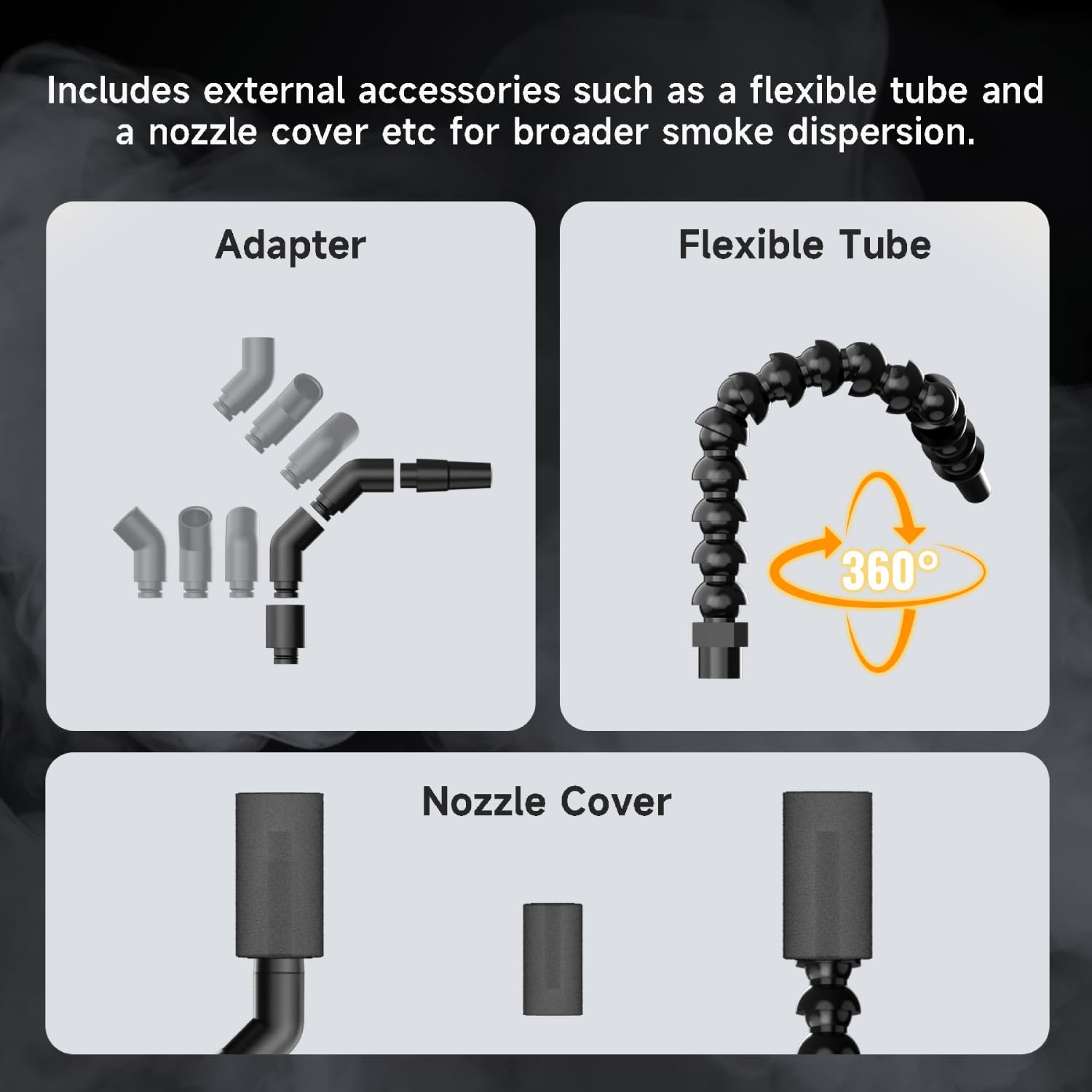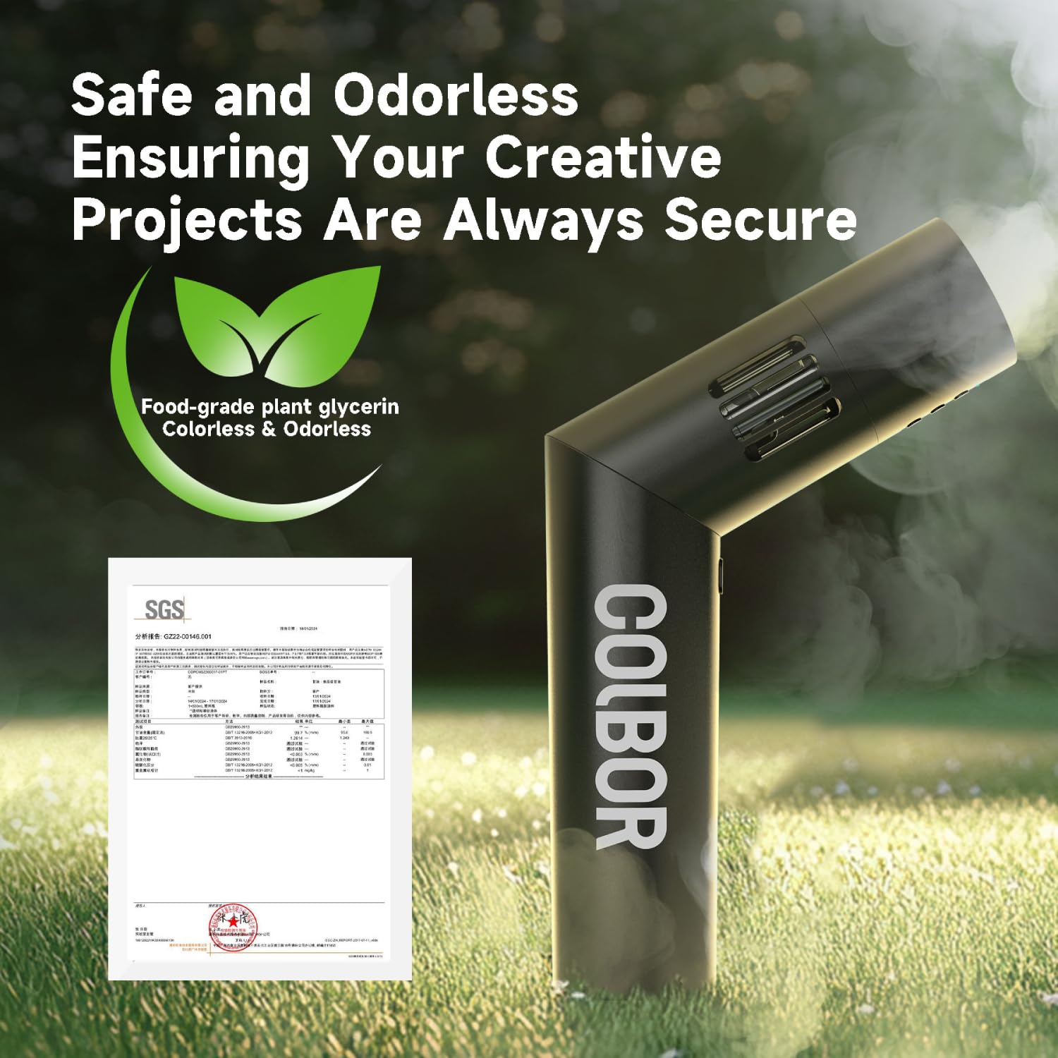 - 【Smart Temperature Control】The handheld smoke machine built with aerospace-grade heat-resistant material, this mini fogger ensures stability even in high-temperature working environments. The built-in smart temperature sensor effectively prevents dry burning and overheating, avoiding burns or equipment damage, providing comprehensive safety protection for extended use
