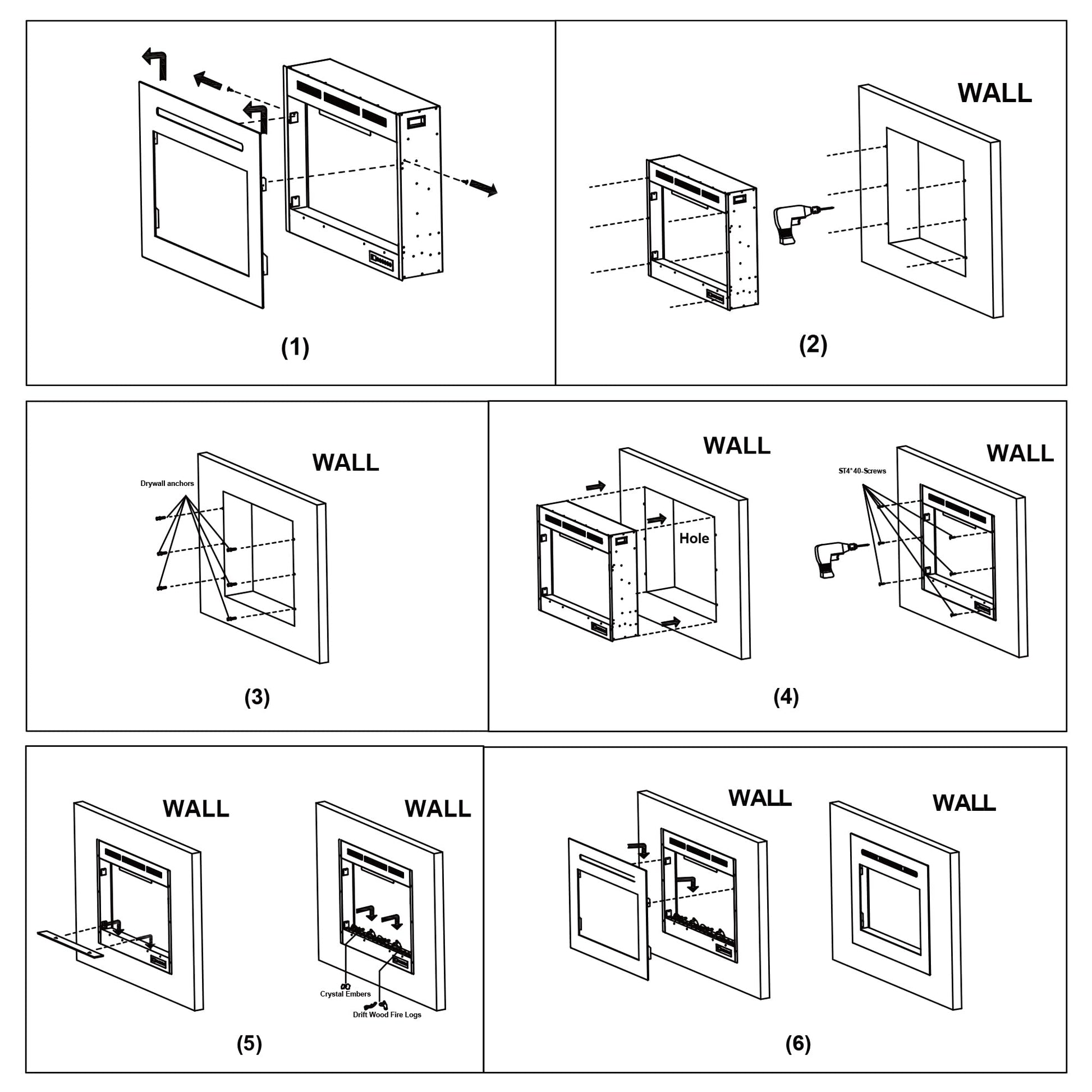 - ONLY RECESSED: This electric fireplace is easily embedded in wall hole to follow the instructions. Note: it only recessed in hole or mantel, NO WALL MOUNT. 1-9h Timer setting can automatically turns off fireplace while you're on rest and relaxation. The linear electric fireplace runs quitely, poviding a warm and quiet environment.