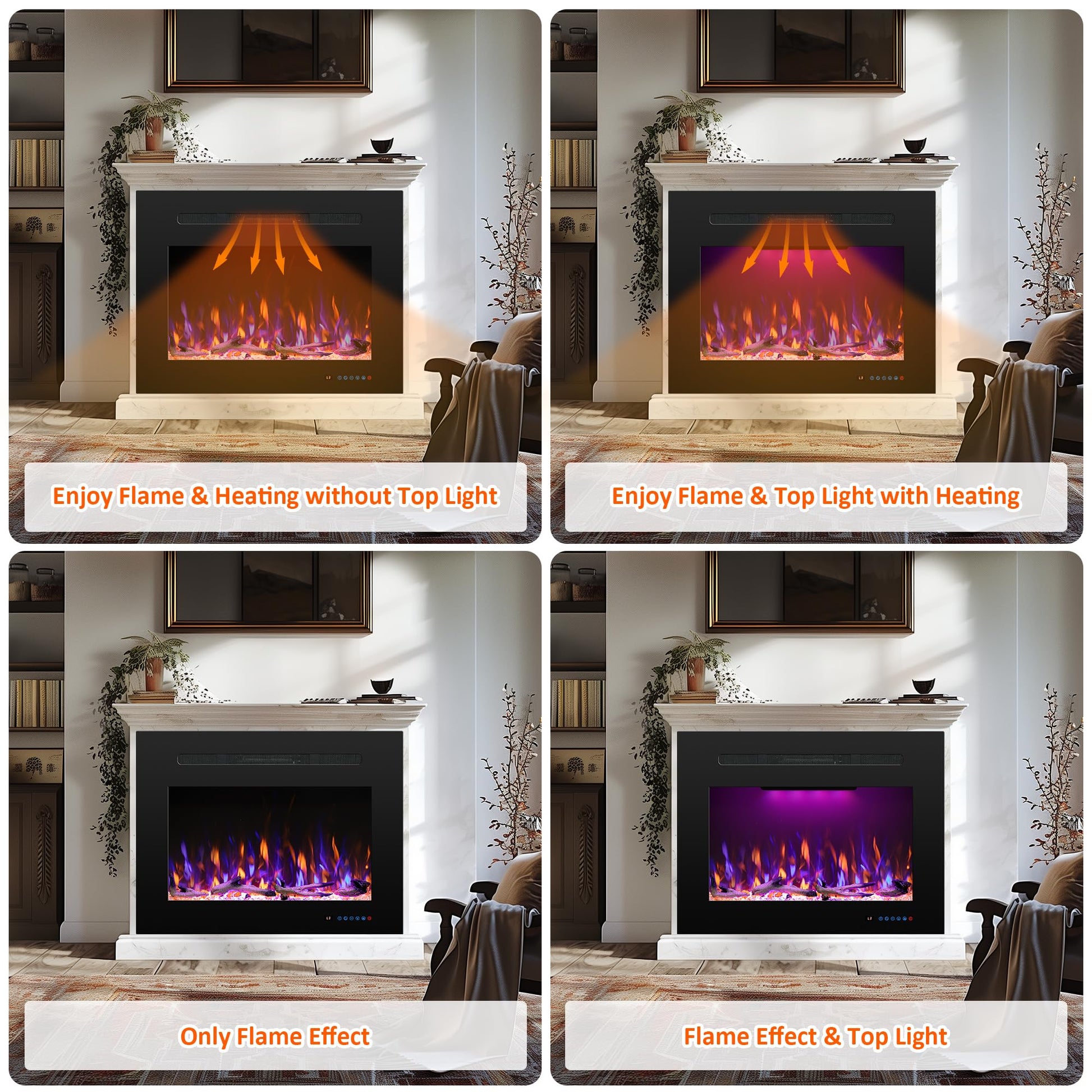 Rodalflame Electric Fireplace Inserts with 3 Flame & Top Light, Recessed Fireplace Heater, Thermostat, 750/1500W, Crackling Sound, Logs & Crystals, Timer, 32.2" W x 26" H Rear, No Wall Mount