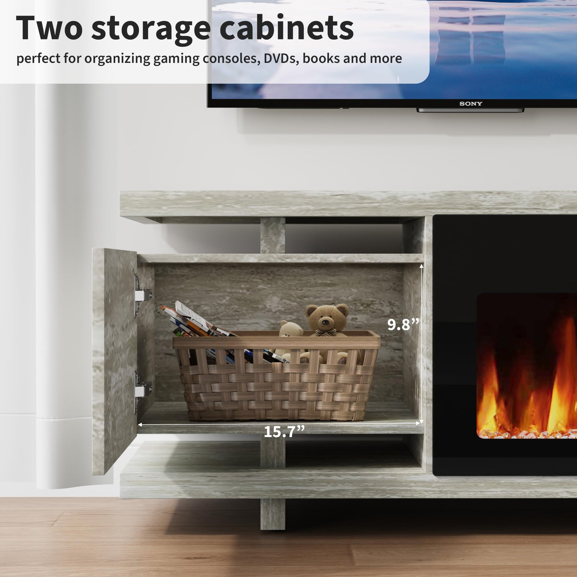 - Premium Materials & Durable Construction: The fireplace TV stand is crafted with modern MDF and particle board, ensuring a sturdy structure, and equipped with anti-slip feet to protect flooring surfaces.