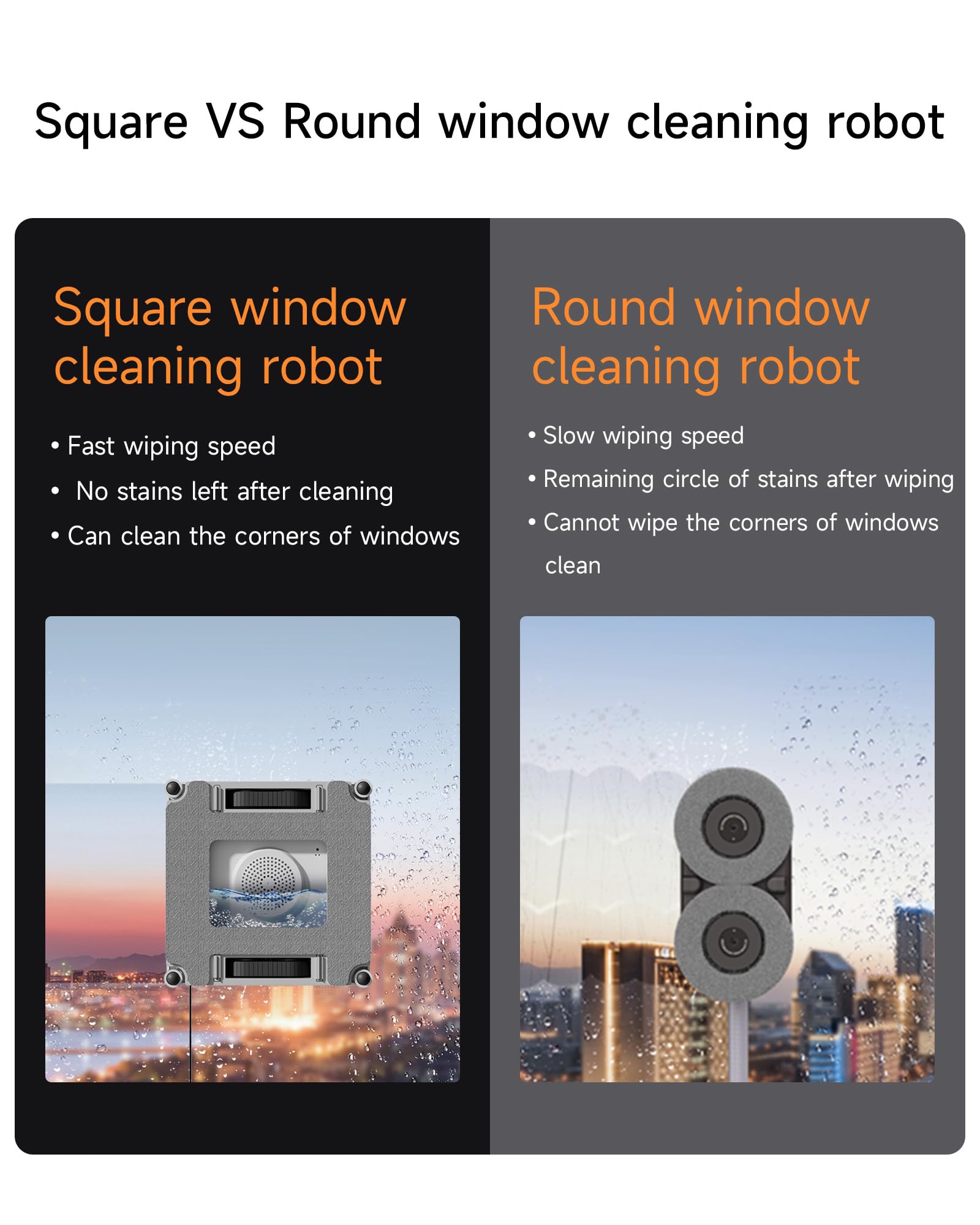 - 【Highest safety】This window robot cleaner is designed with a built-in UPS (uninterruptible power supply), allowing the window cleaner robot to continue operating for up to 30 minutes during a power outage. The window cleaner robot also includes a 5m high-strength safety rope supporting up to 50kg, ensuring safe cleaning for high-rise windows.