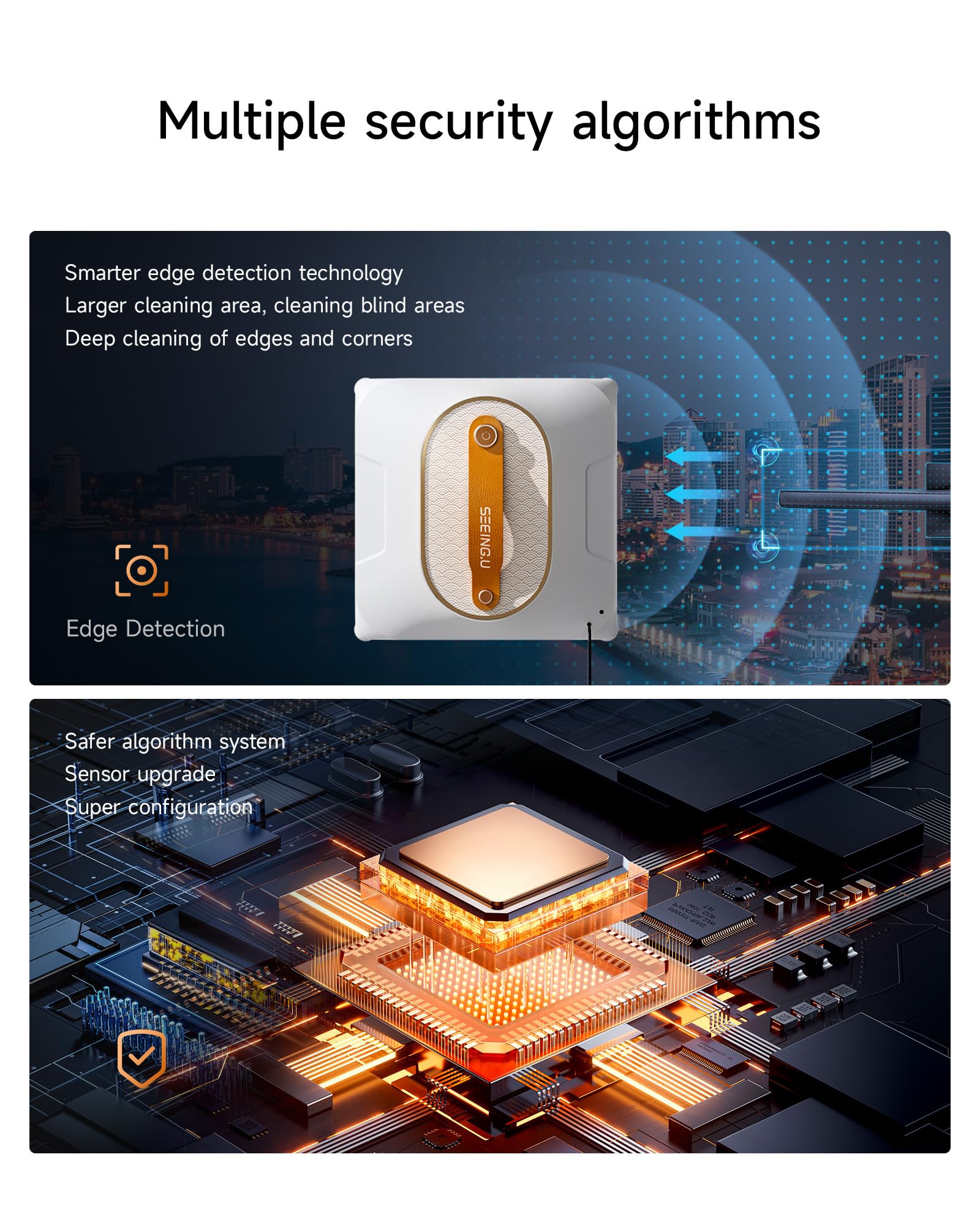 SEEING.U Window Cleaning Robot, Window Cleaner Robot with Dual Water Spray 6000Pa Suction Power Automatic Cleaning with Intelligent Path Planning Perfect for High-Rise Windows and Glass Doors