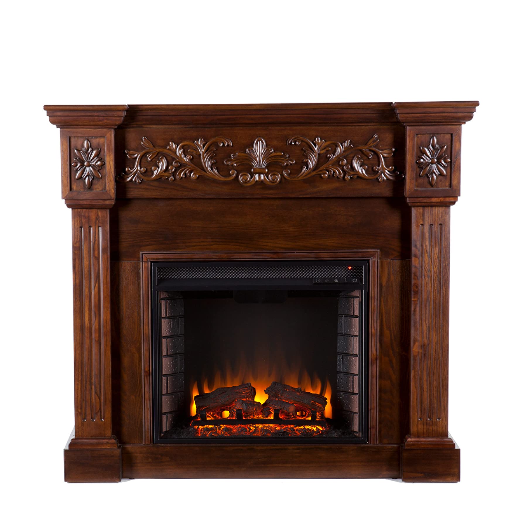 SEI Furniture Calvert Electric Carved Floral Trim 44" Fireplace, Espresso (AMZ8729EF)