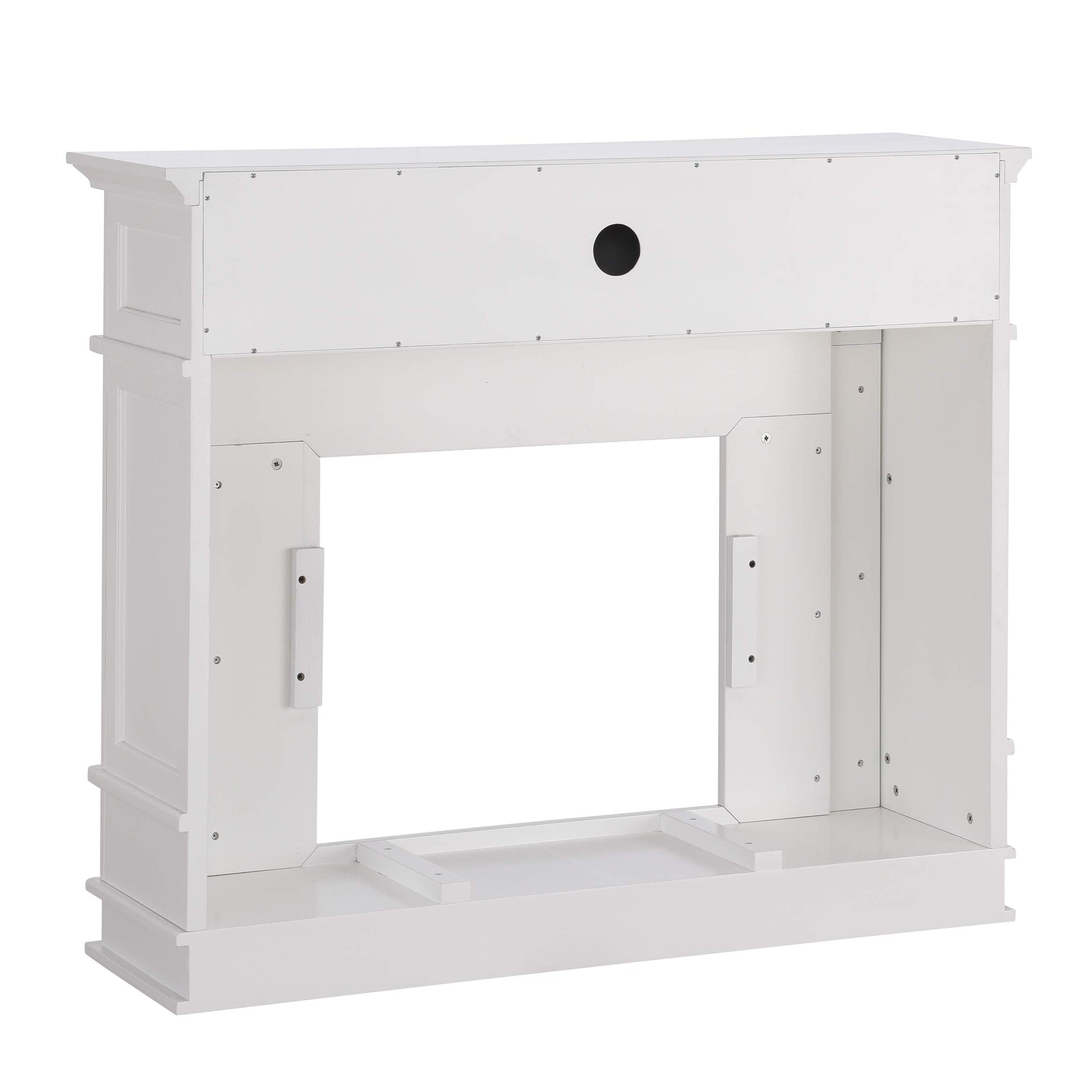 SEI Furniture Highgate Electric Fireplace with Hidden Media Shelf, New White with Faux Marble