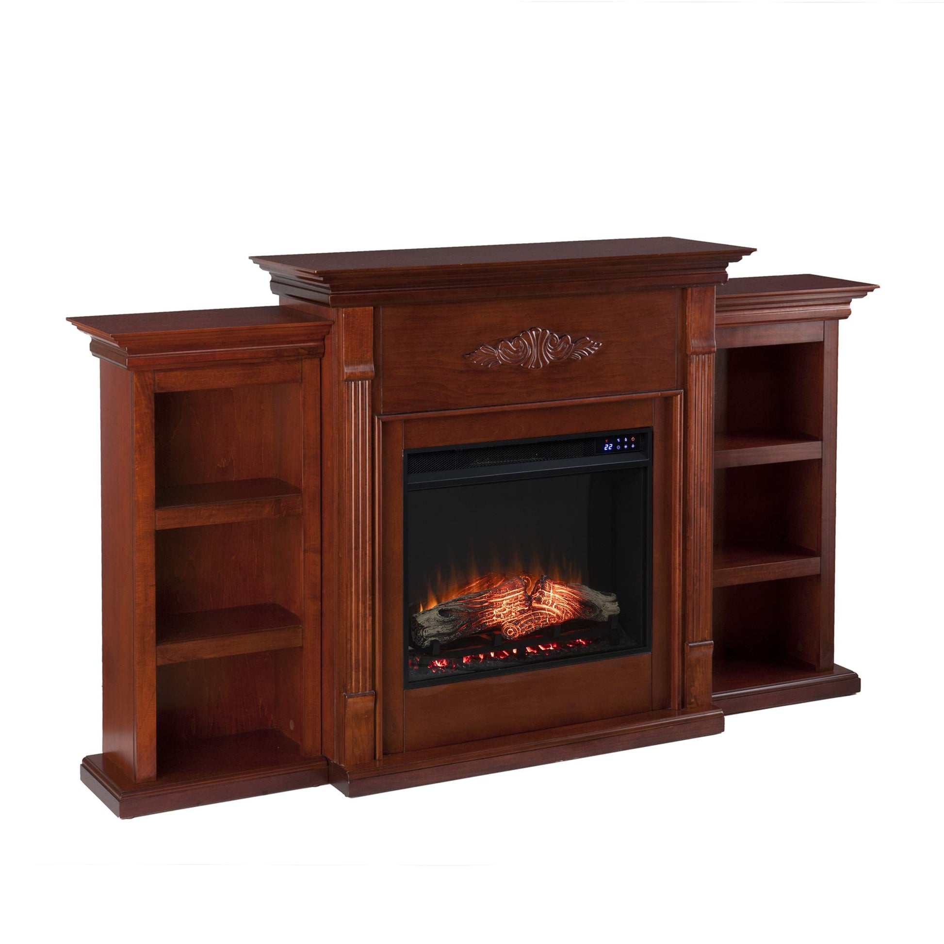 SEI Furniture Tennyson Electric Fireplace with Bookcases, New Mahogany