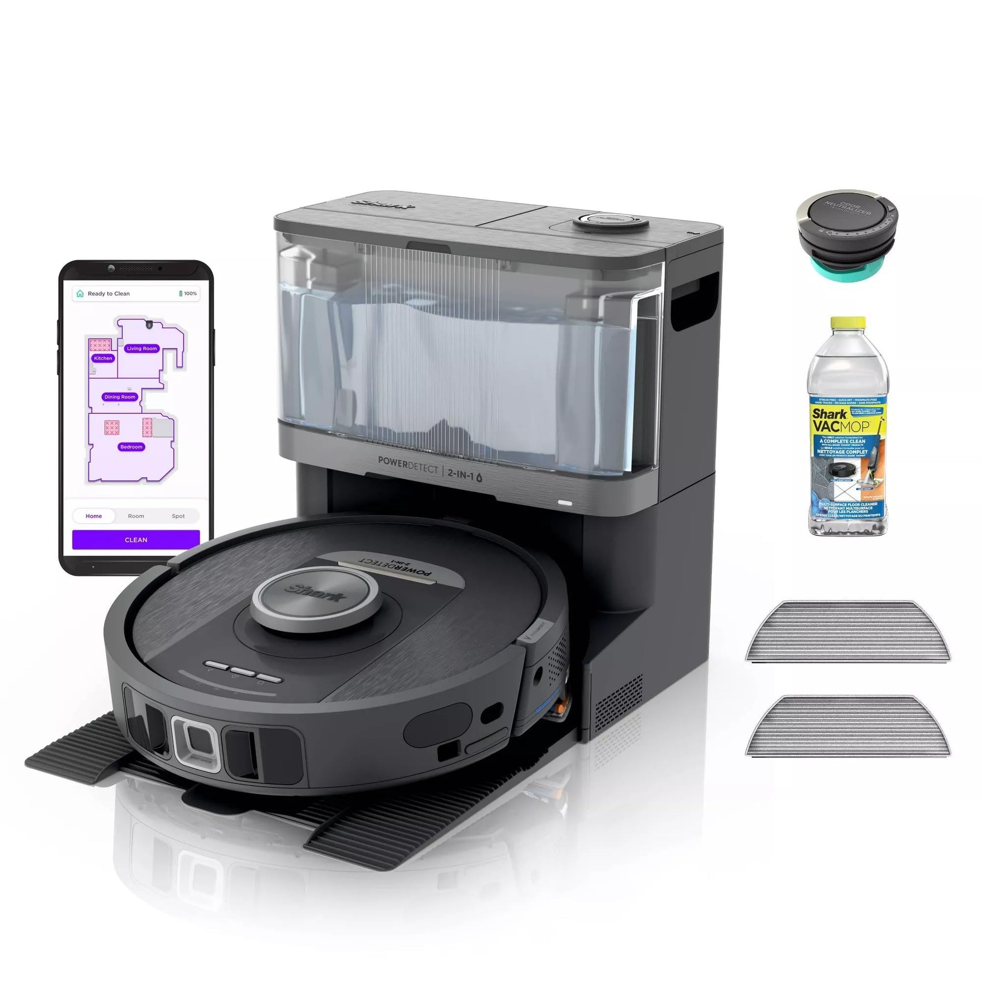 Shark Robot Vacuum & Mop Combo, PowerDetect NeverTouch, Self-Emptying & Self-Refilling, 60-Day Capacity, 30-Day Refill Tank, Pad Dry, RV2820YE (Renewed)