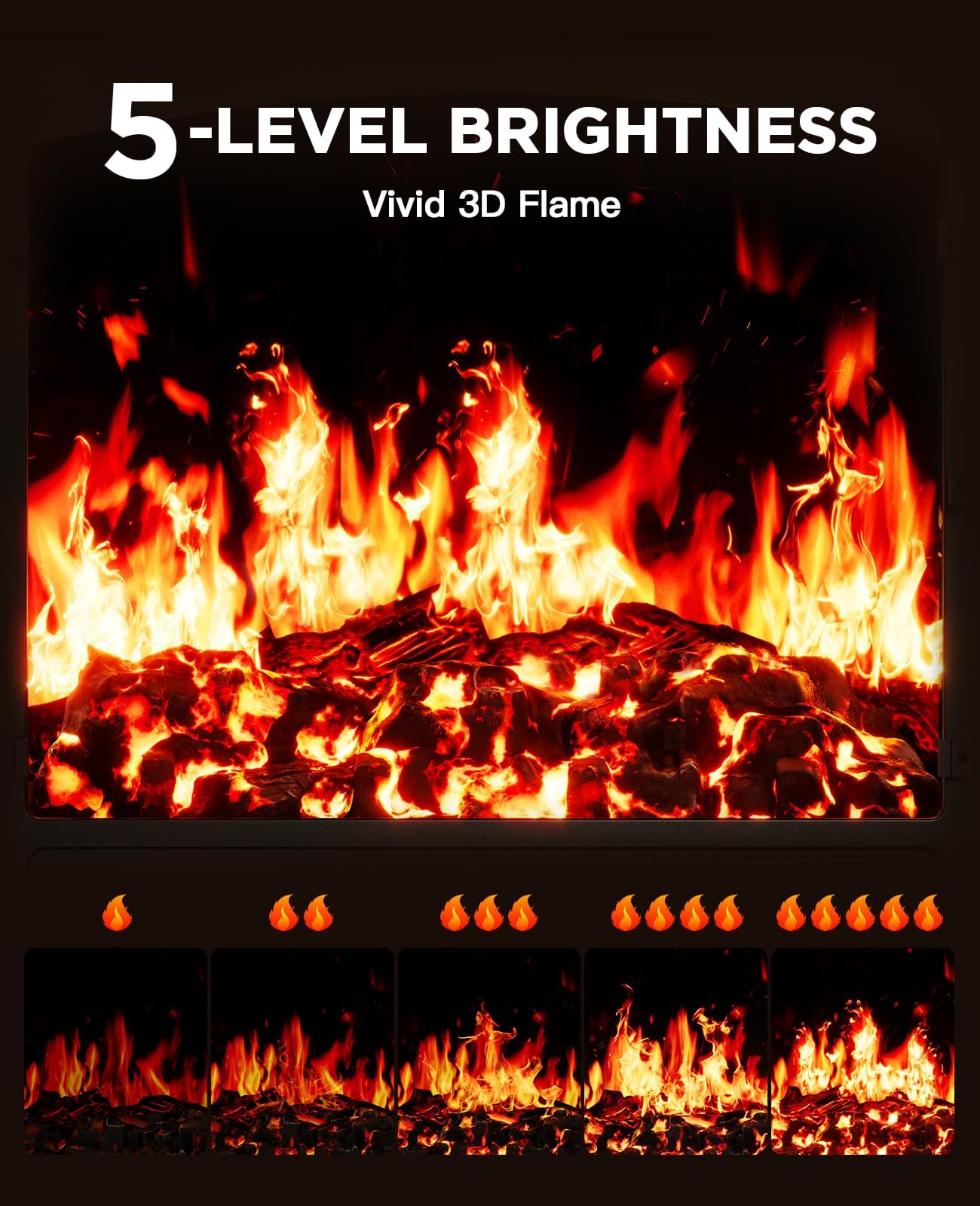 - Realistic 3D Flames: Enjoy the beauty of realistic 3D flames that can enhance the ambiance of any room. The electric fireplace features customizable warmth with 62°F to 82°F temperature control and 5 brightness settings to offer a personalized fireplace heater experience. Best of all, you can control the settings without having to open the door, adding convenience and comfort to your space.