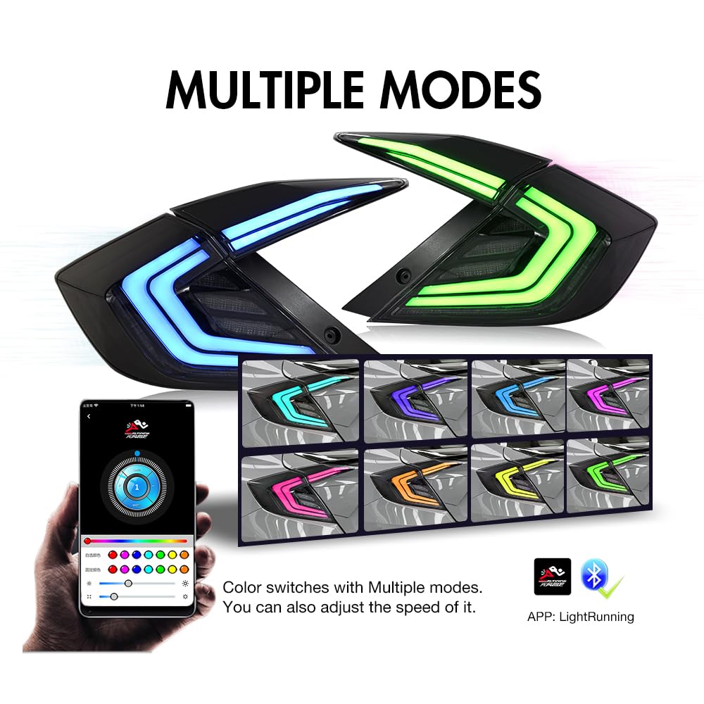 T T-ABC New RGB Taillight Compatible with Honda Civic 2016-2021 Tail Light Sedan Touring Sport EX EX-L LX Rear Lights Multicolored N1 Style LED Sequential Animation 10th Gen Custom Back Accessories