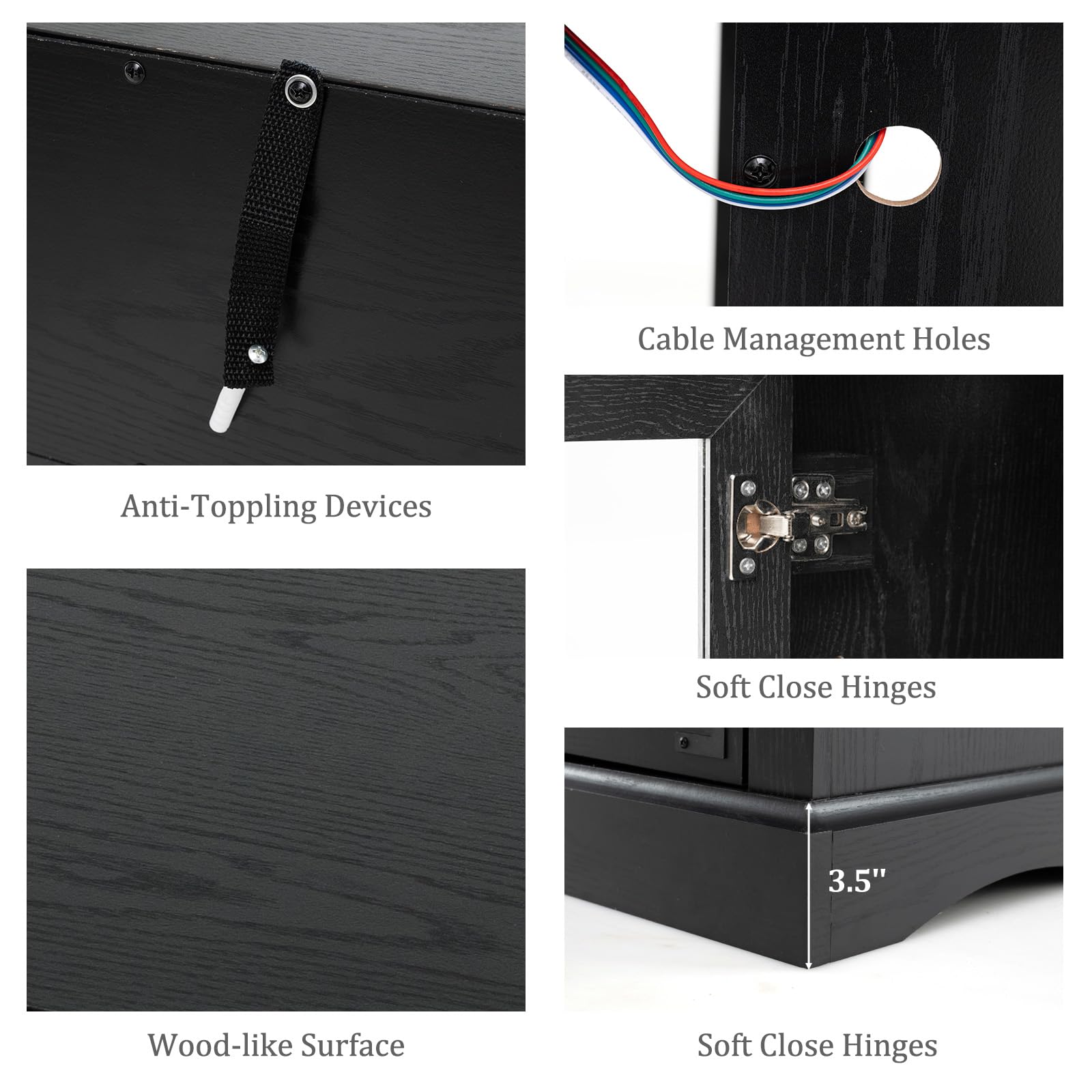 - Sturdy Construction: Built to last, this entertainment center features a 3.5” thickened base and anti-toppling devices for added stability and safety. This robust construction ensures that this living room furniture remains secure and sturdy. Moreover, the countertop holds up to 110 lbs for your TVs up to 65 inches.
