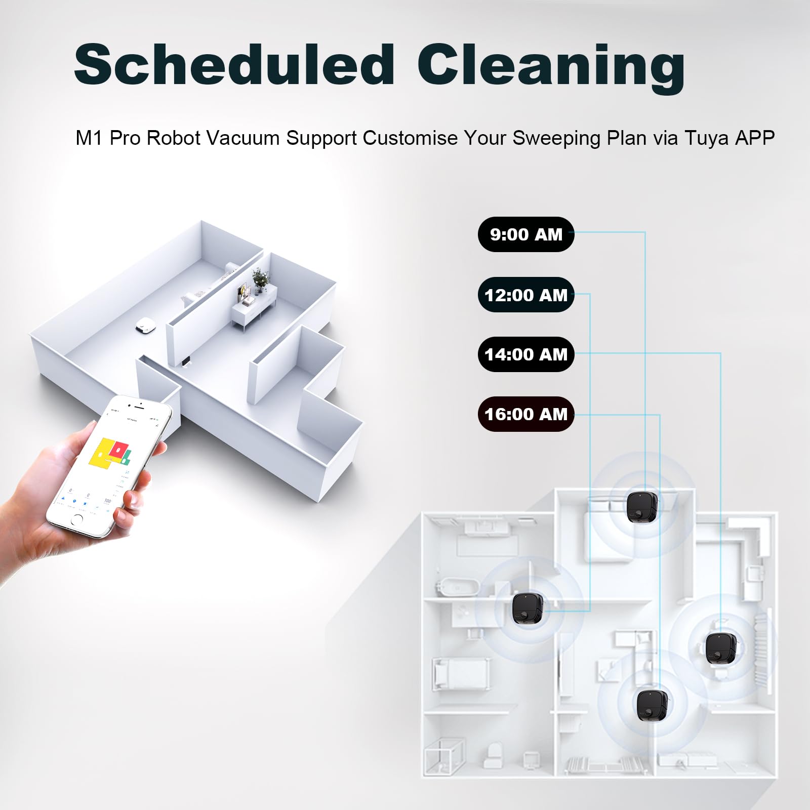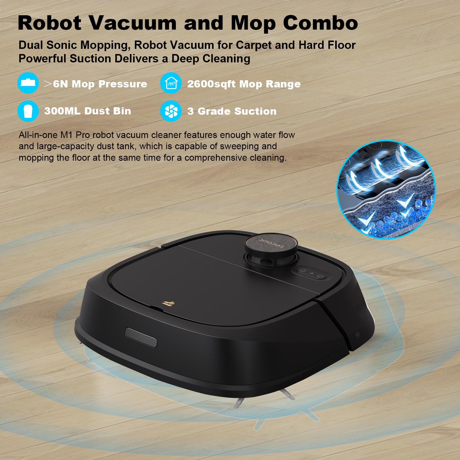 - Cleaning automatically lift: M1 Pro has an electronically controlled automatic lifting system that ensures continuous friction for mopping.Encounter carpet, obstacles, mop automatically lifts up without wetting the carpet, and crosses obstacles up to 2 cm