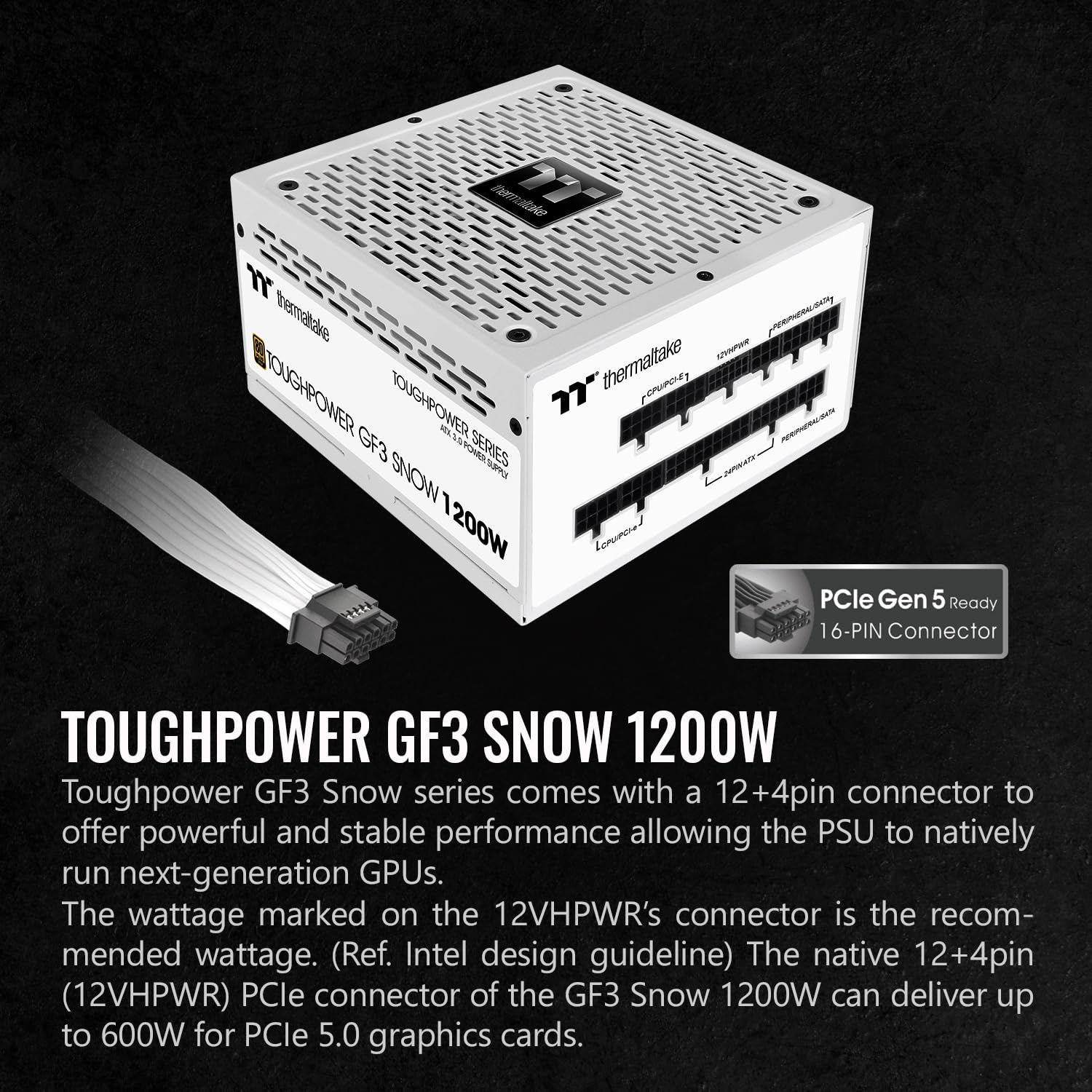 Thermaltake Toughpower GF3 Snow Edition 1200W 80+ Gold Full Modular SLI/Crossfire Ready ATX 3.0 Power Supply PCIe Gen.5 600W 12VHPWR Connector Included PS-TPD-1200FNFAGU-N 10 Year Warranty