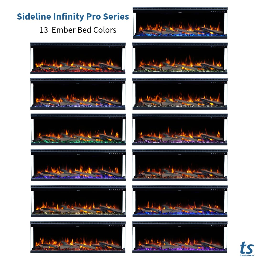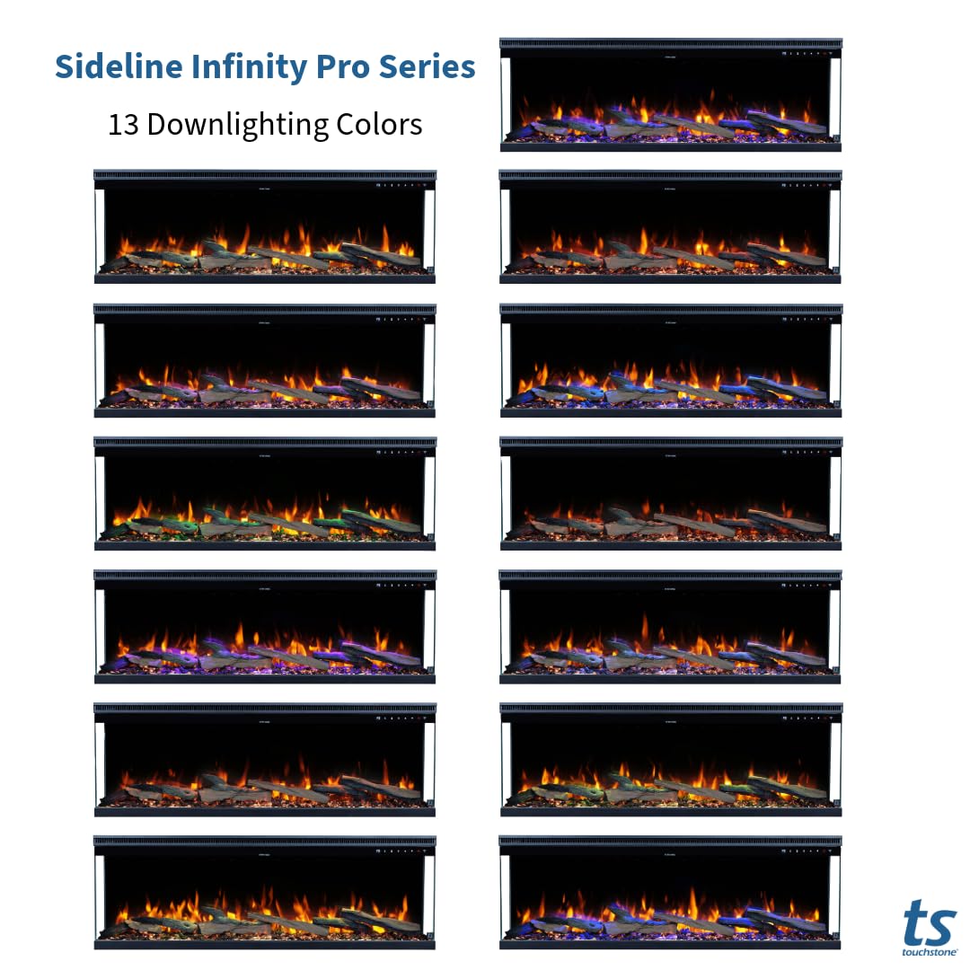 Touchstone Sideline Infinity Pro 3-Sided Smart 50" WiFi-Enabled Electric Fireplace - 80045 - Built-in - 6 Realistic Flame Colors- 13-Color Down Lighting- Crackle Sound- 1,500W Heater