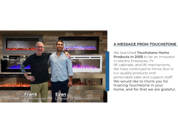 Touchstone Smart Electric Fireplace-The Sideline 60" Wide-in Wall Recessed - 30 Realistic Ember Color/Flame Options - 1,500W Heater w/Thermostat - Log & Crystal Hearth Options - Alexa/WiFi Enabled